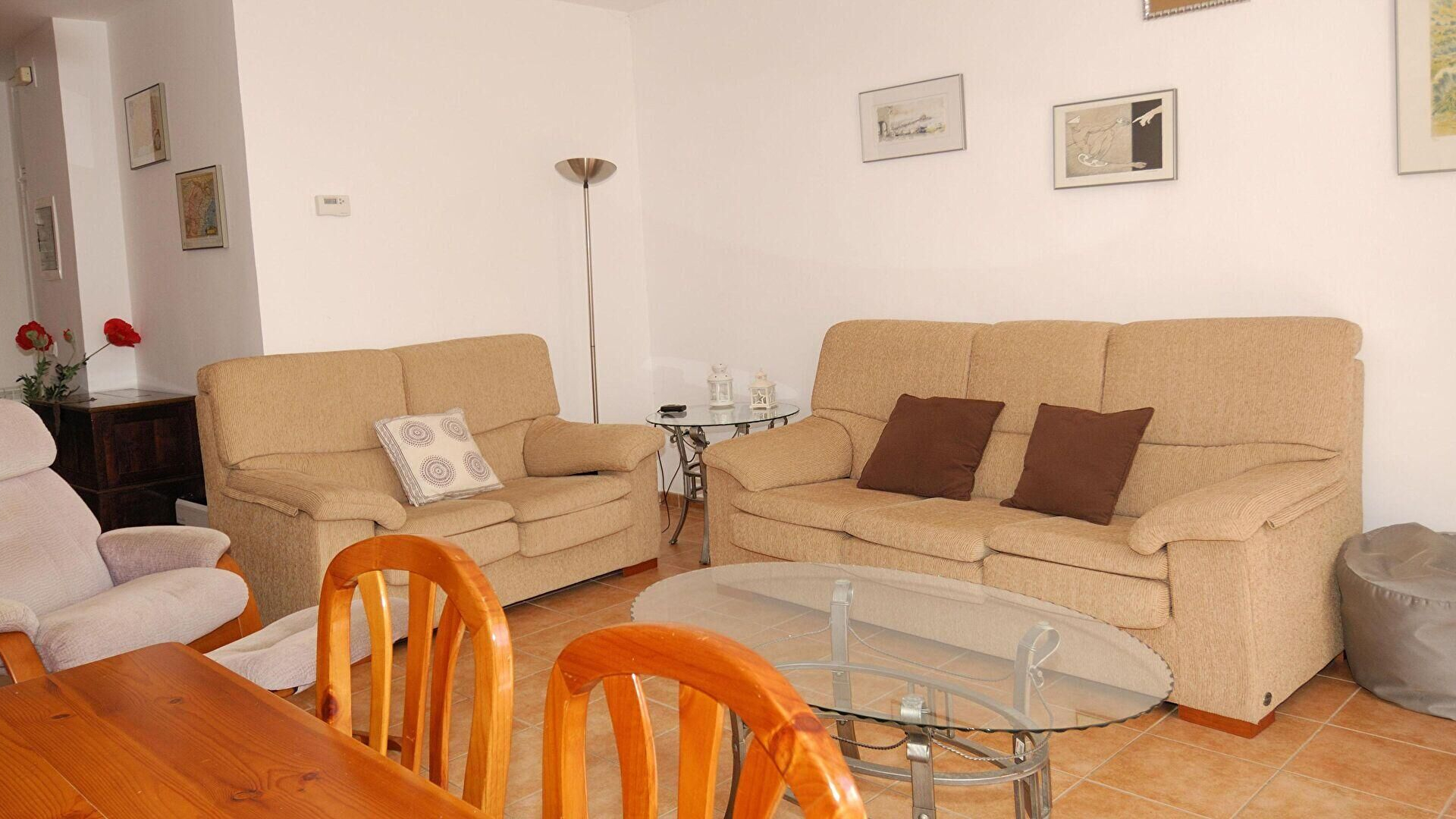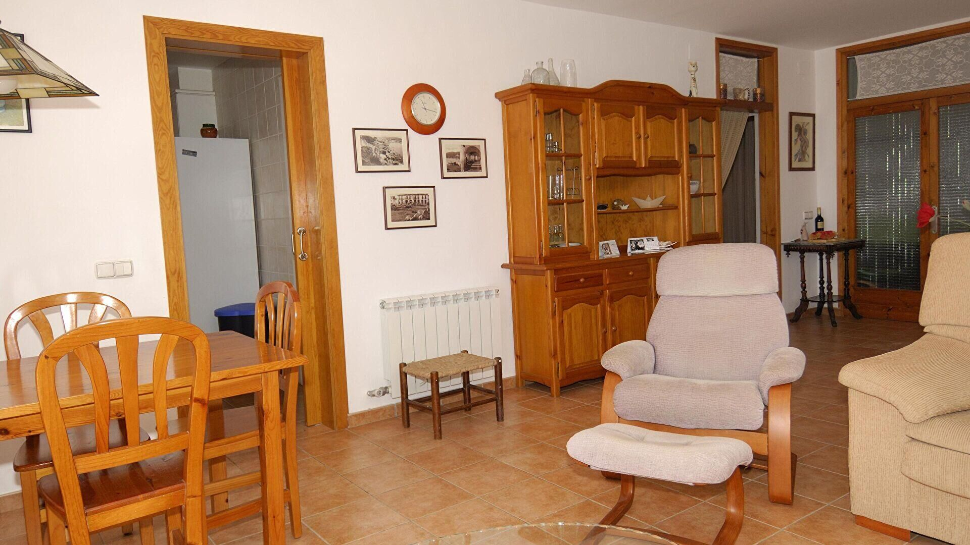 - Salle de séjour, téléviseur et sortie sur la terrasse.