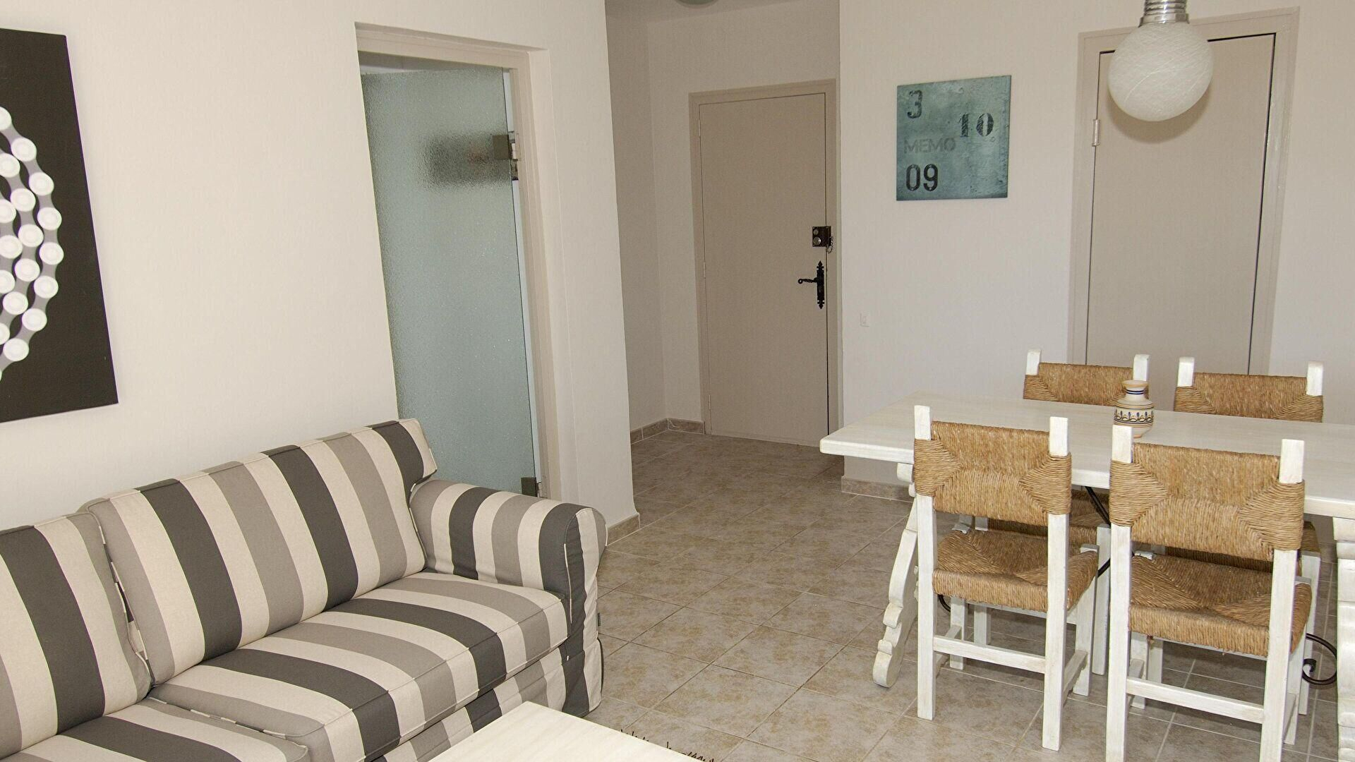 - Salle de séjour, téléviseur, vue sur la mer et sortie sur la terrasse.