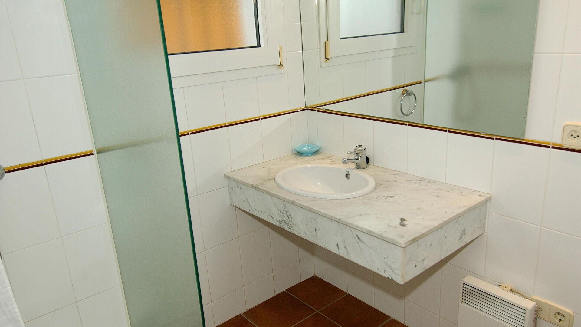 - 2 chambres avec 2 lits simples et salle de bain avec douche (en suite).