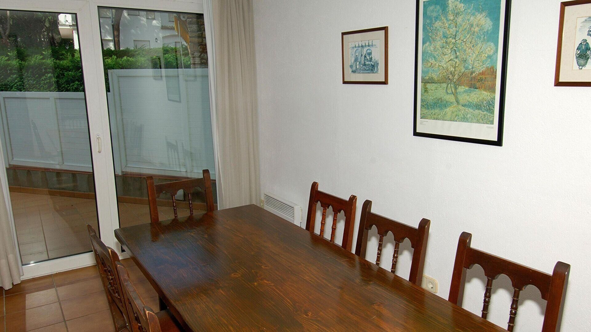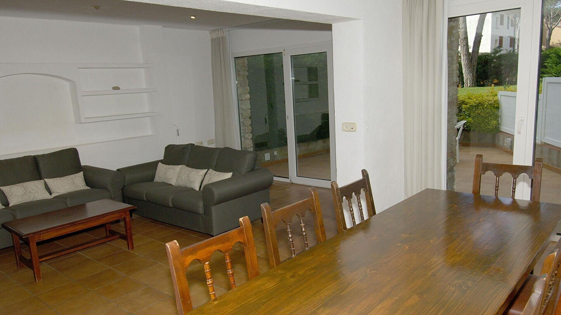 - Salle de séjour, sortie sur la terrasse et téléviseur.