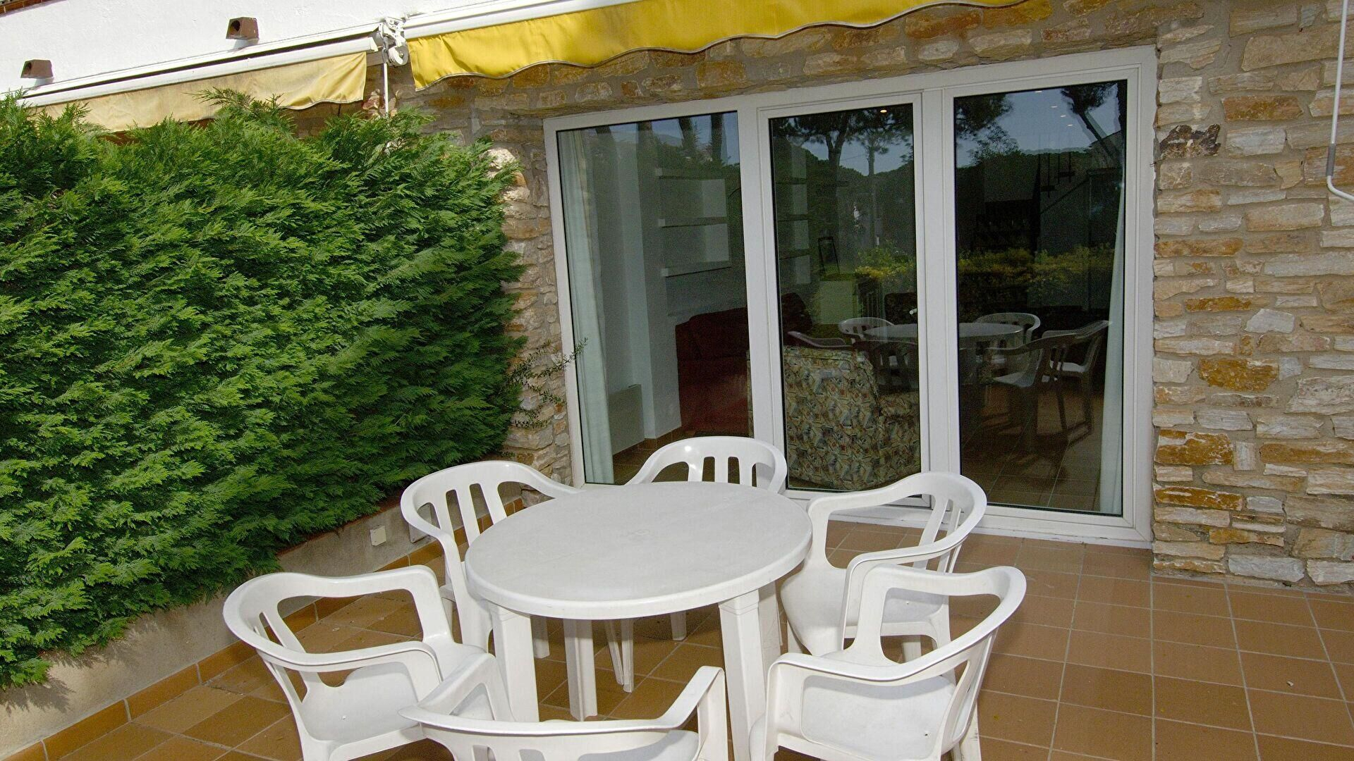 - Salle de séjour, téléviseur, sortie sur la terrasse et sortie sur le jardin communautaire.