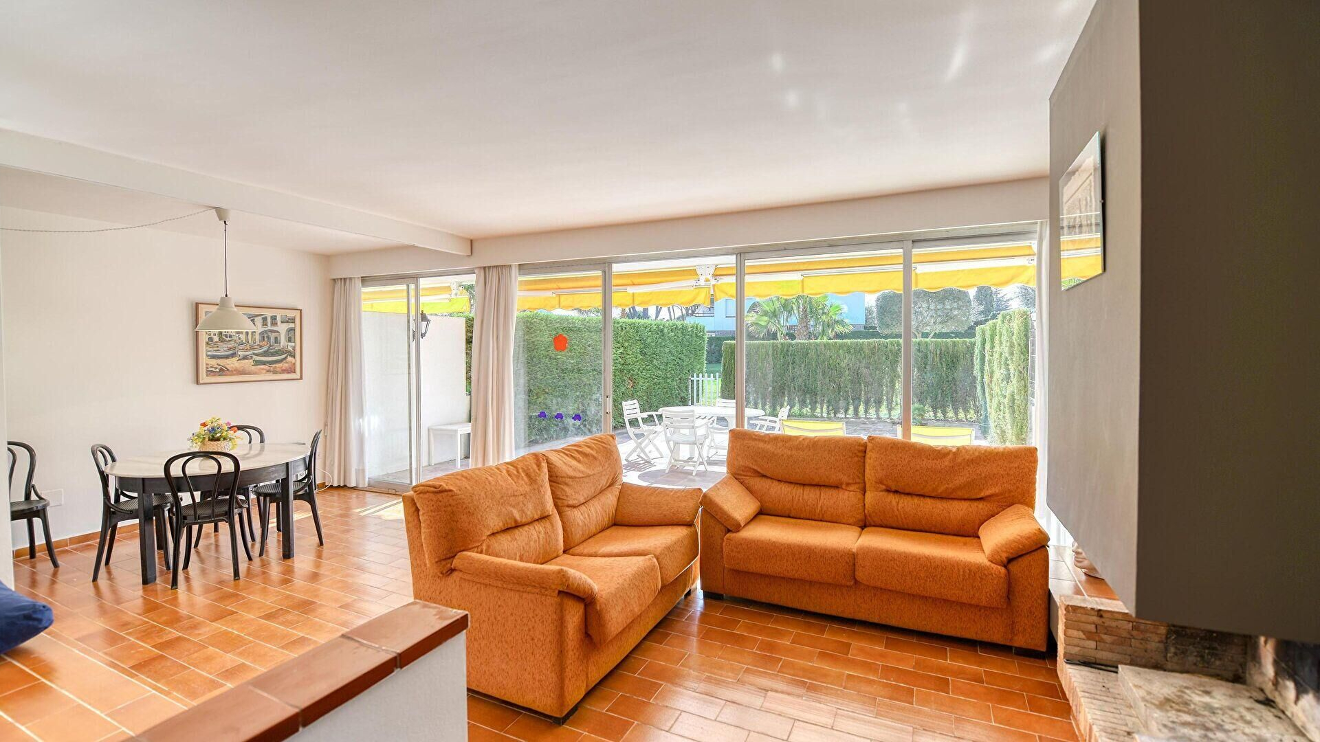 Jardin, terrasse, salle de séjour, cuisine, 2 chambres et 2 salles de bains.