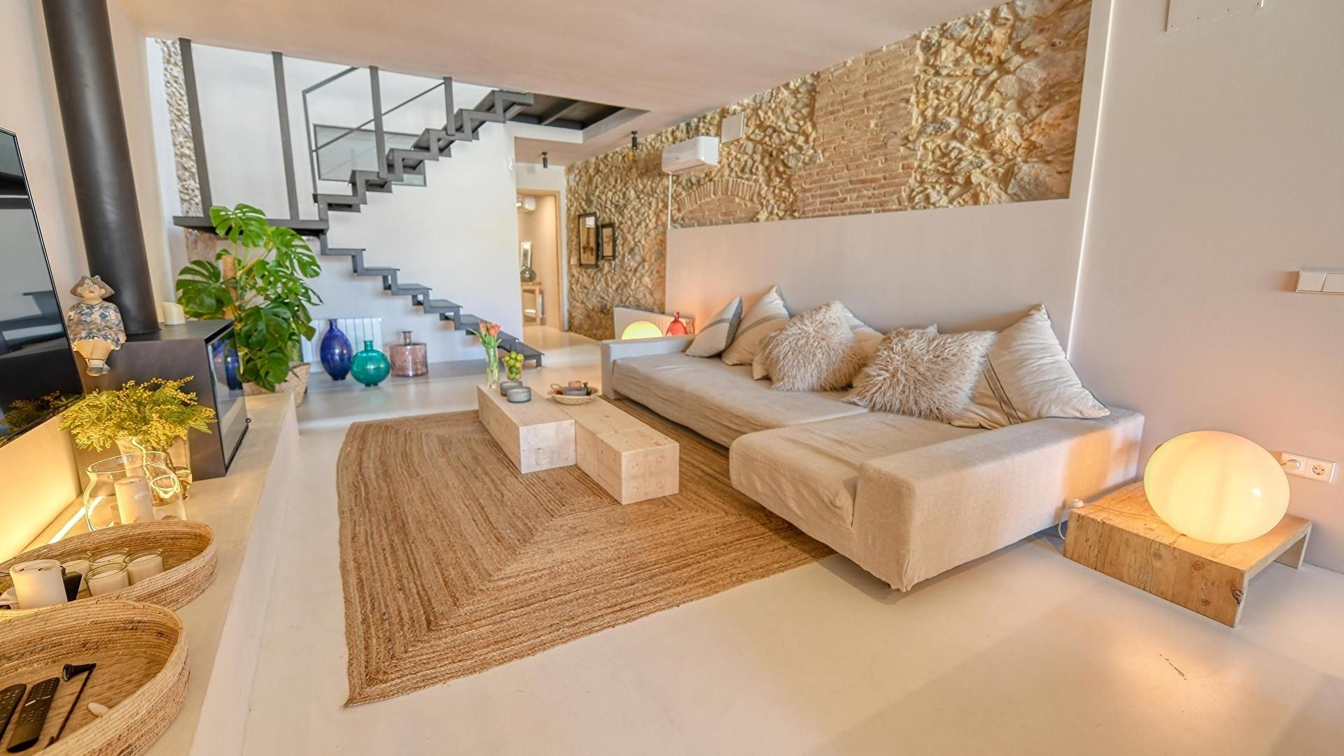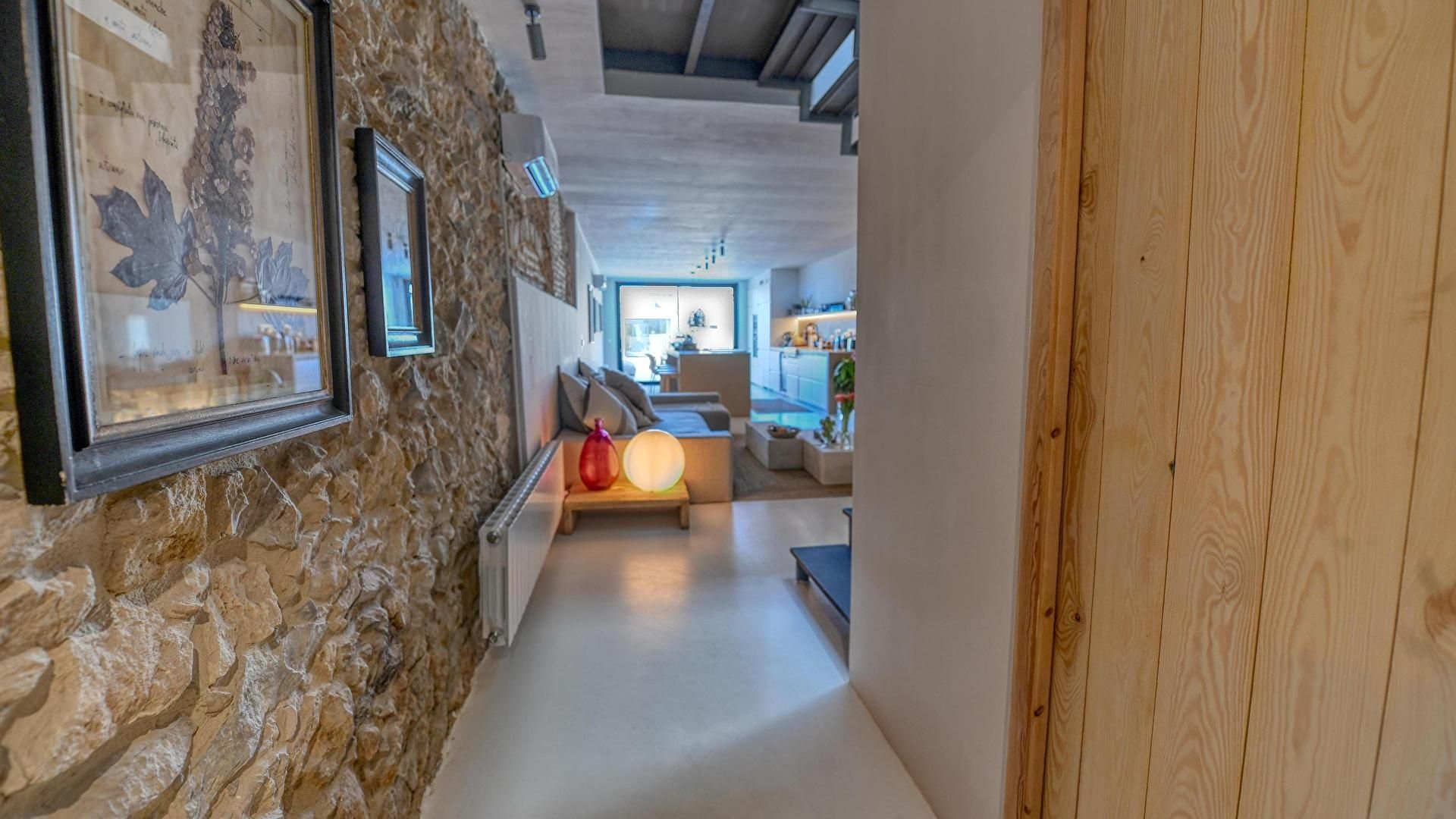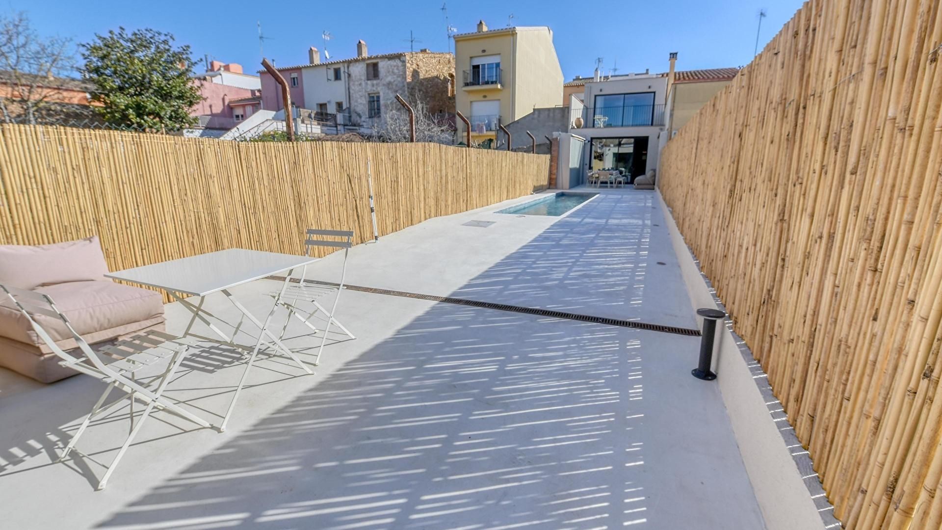 Jardin avec piscine, 2 chill-out, salon, cuisine américaine, 3 chambres, 3 salles de bains et 1 salle de bain avec douche.