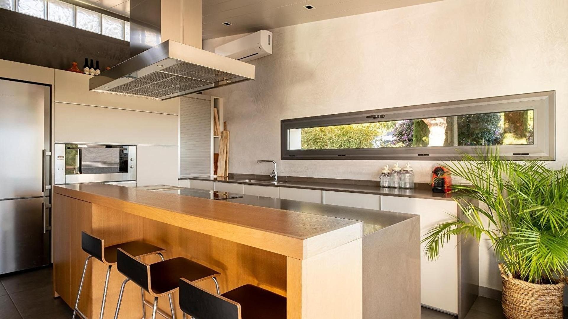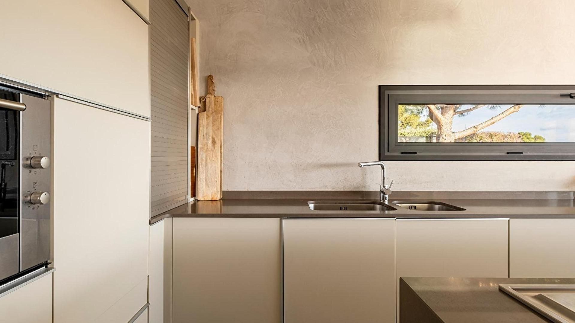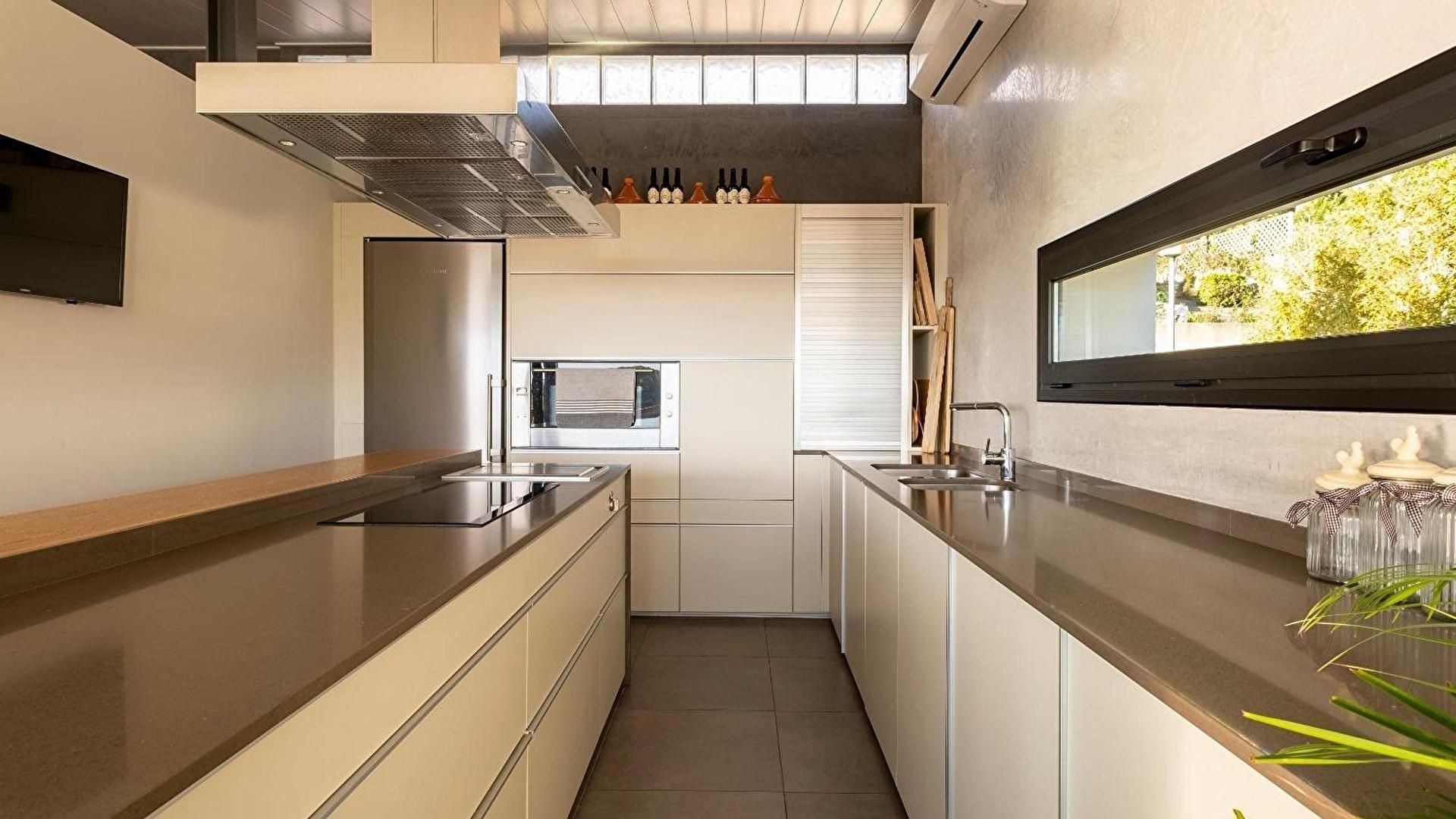 - Cuisine avec vue sur la mer et sortie sur la terrasse.