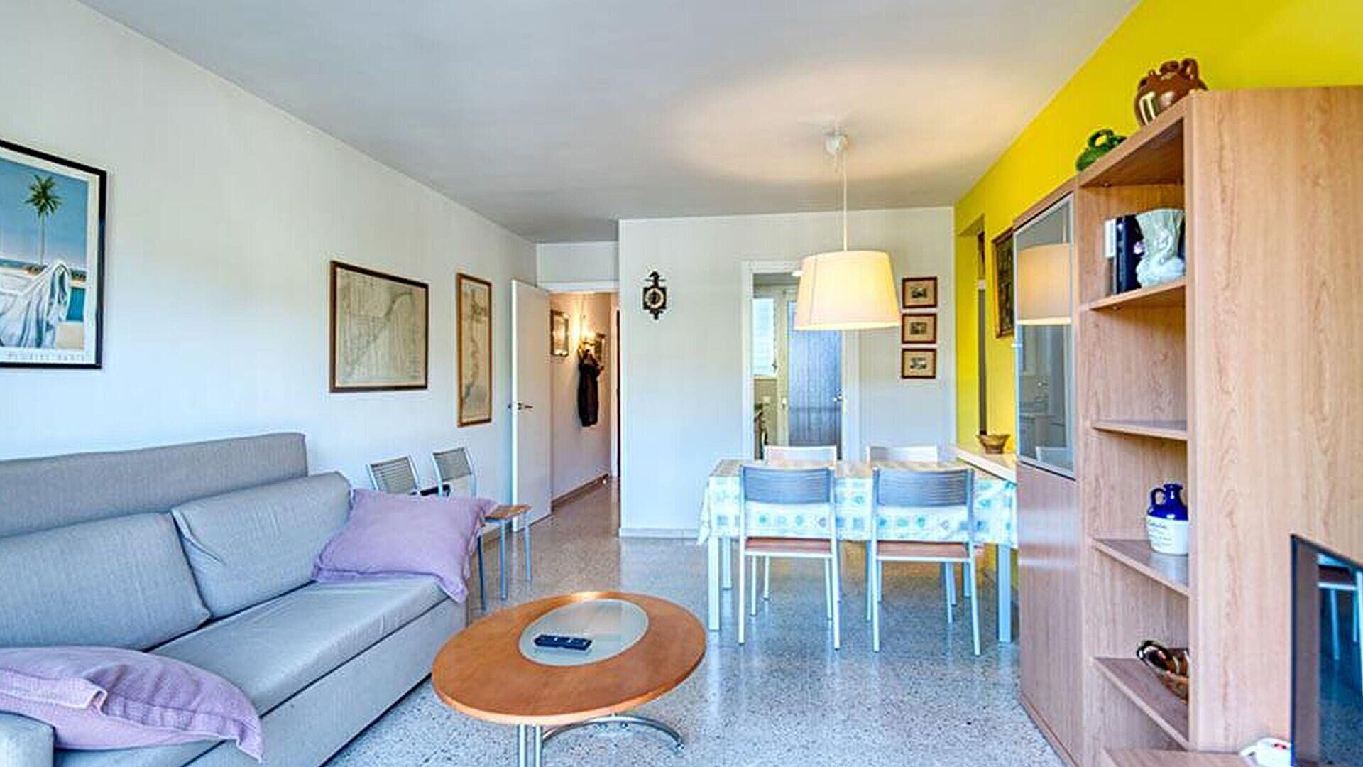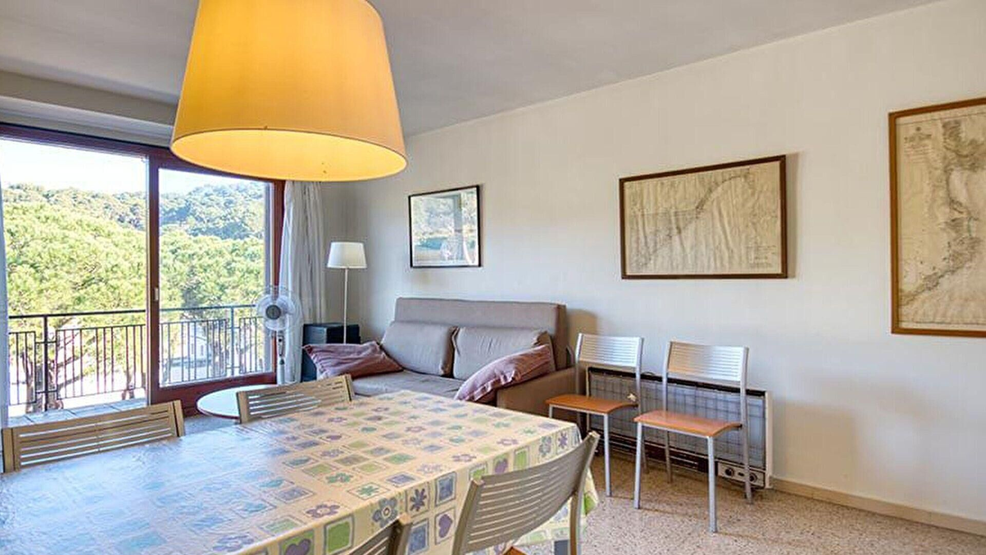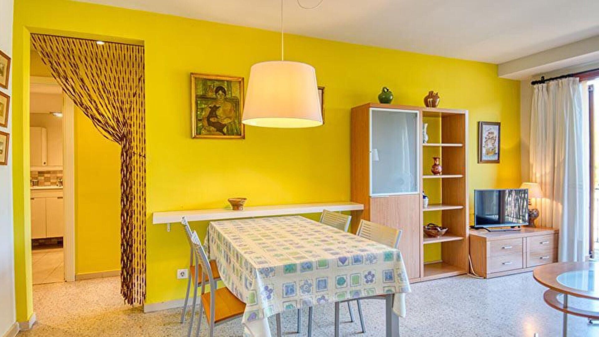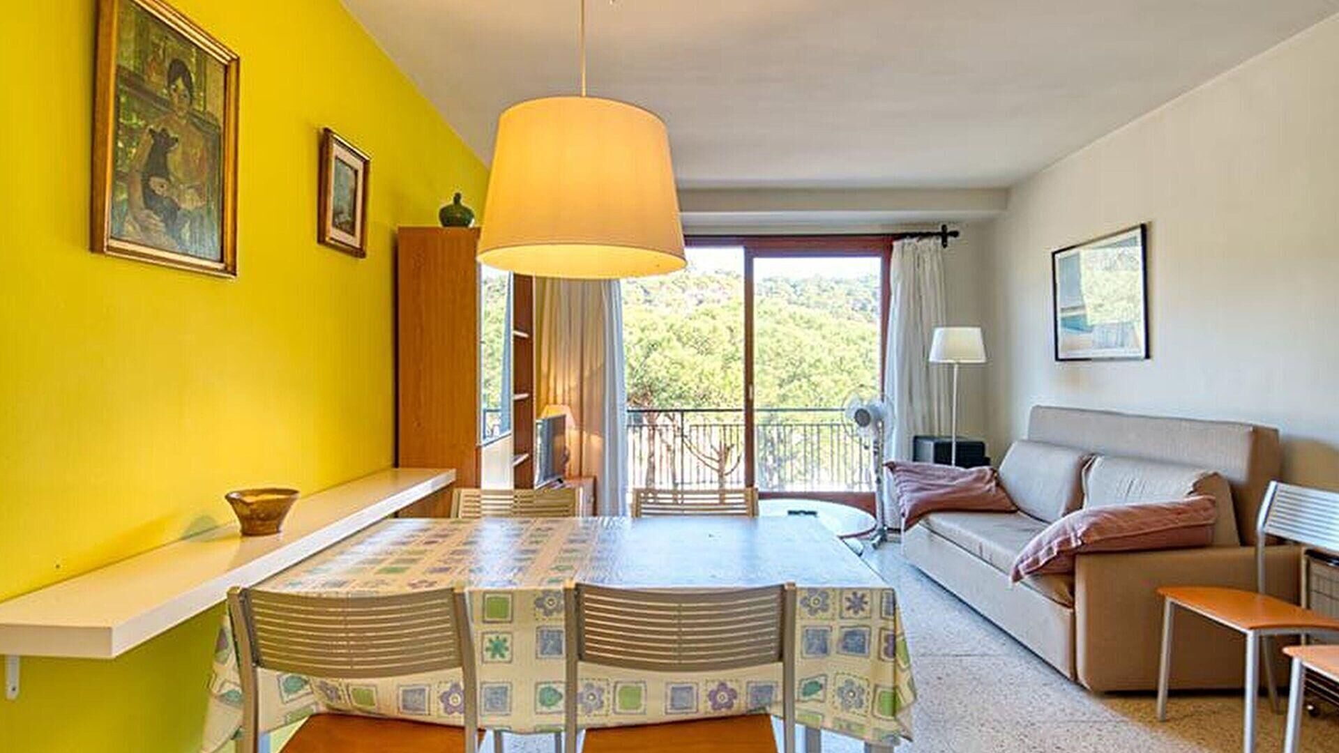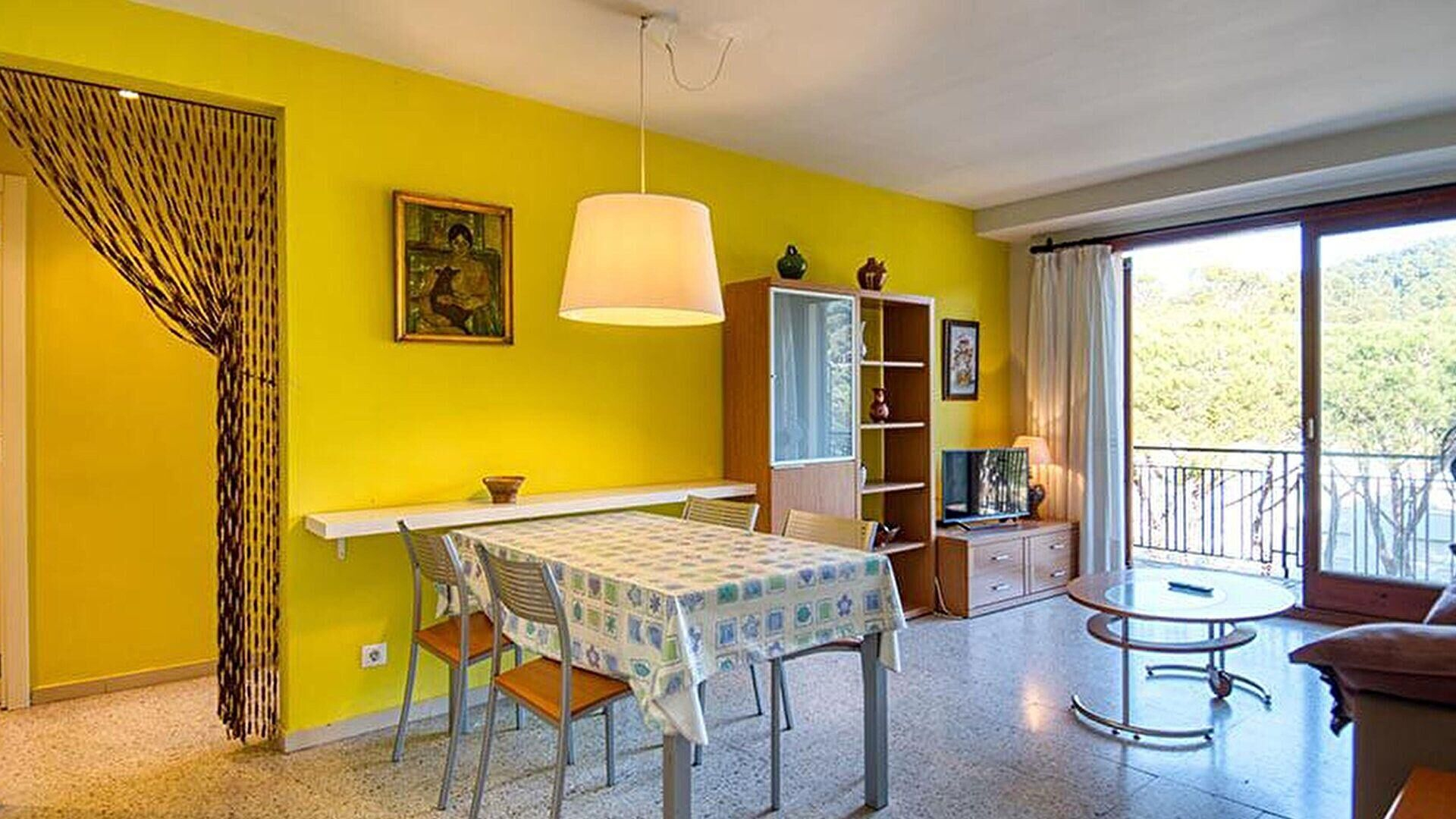 - Salle de séjour, téléviseur et sortie sur la terrasse.