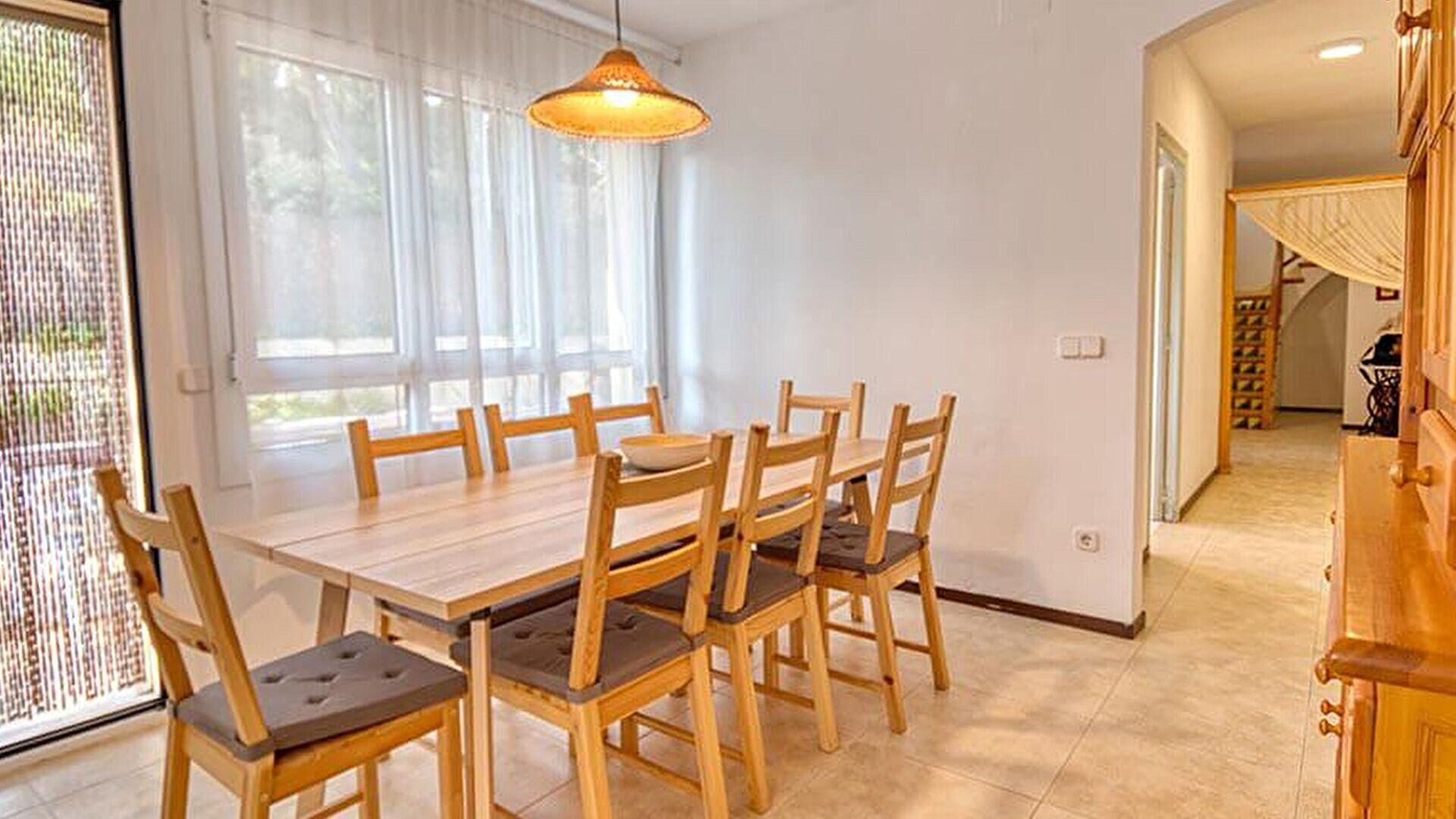 - Cuisine avec plaque de cuisson vitrocéramique, four, réfrigérateur combi, lave-vaisselle et machine à laver.