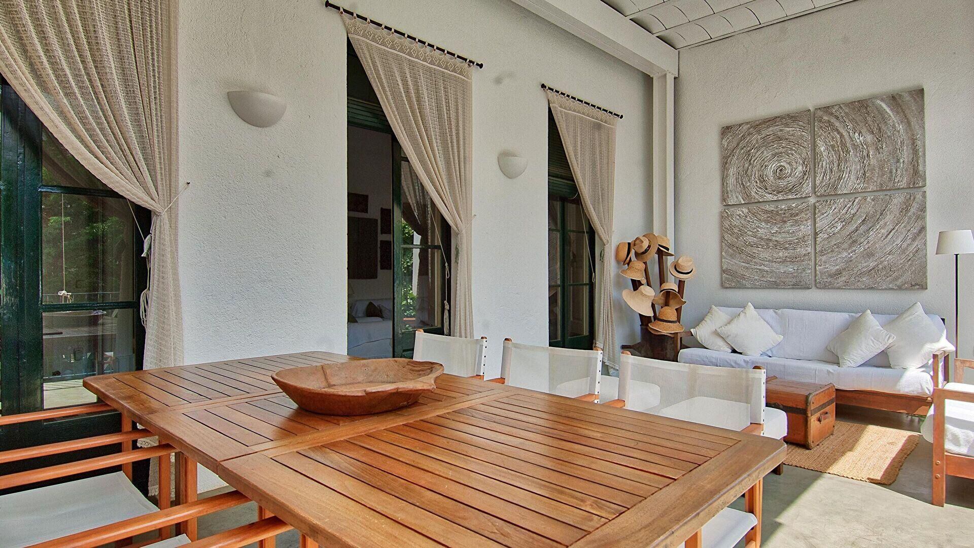 • Salle de séjour avec sortie sur le porche et téléviseur.