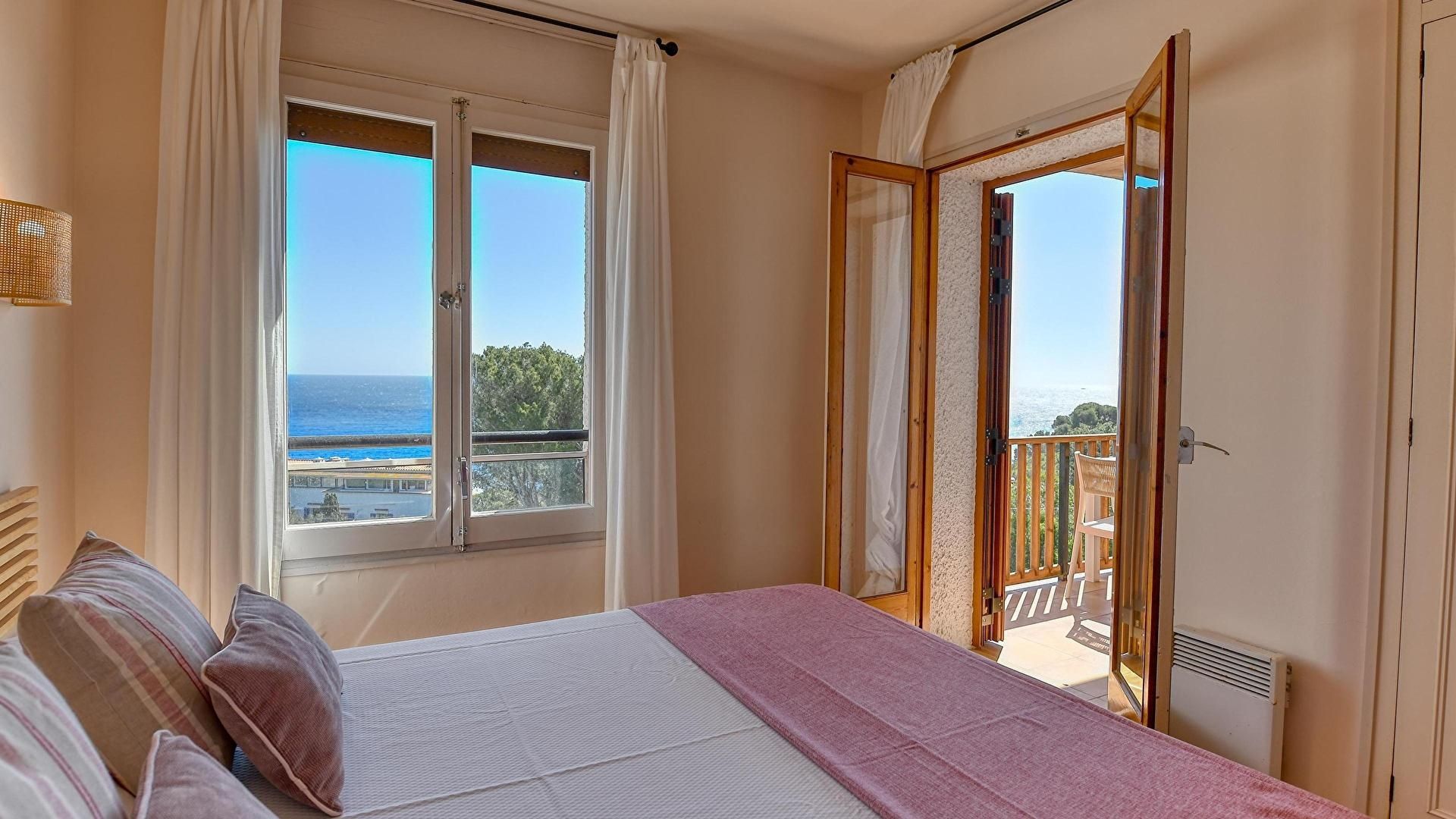 - Chambre avec 1 lit double, radiateur électrique, sortie sur la terrasse et vue sur la mer.