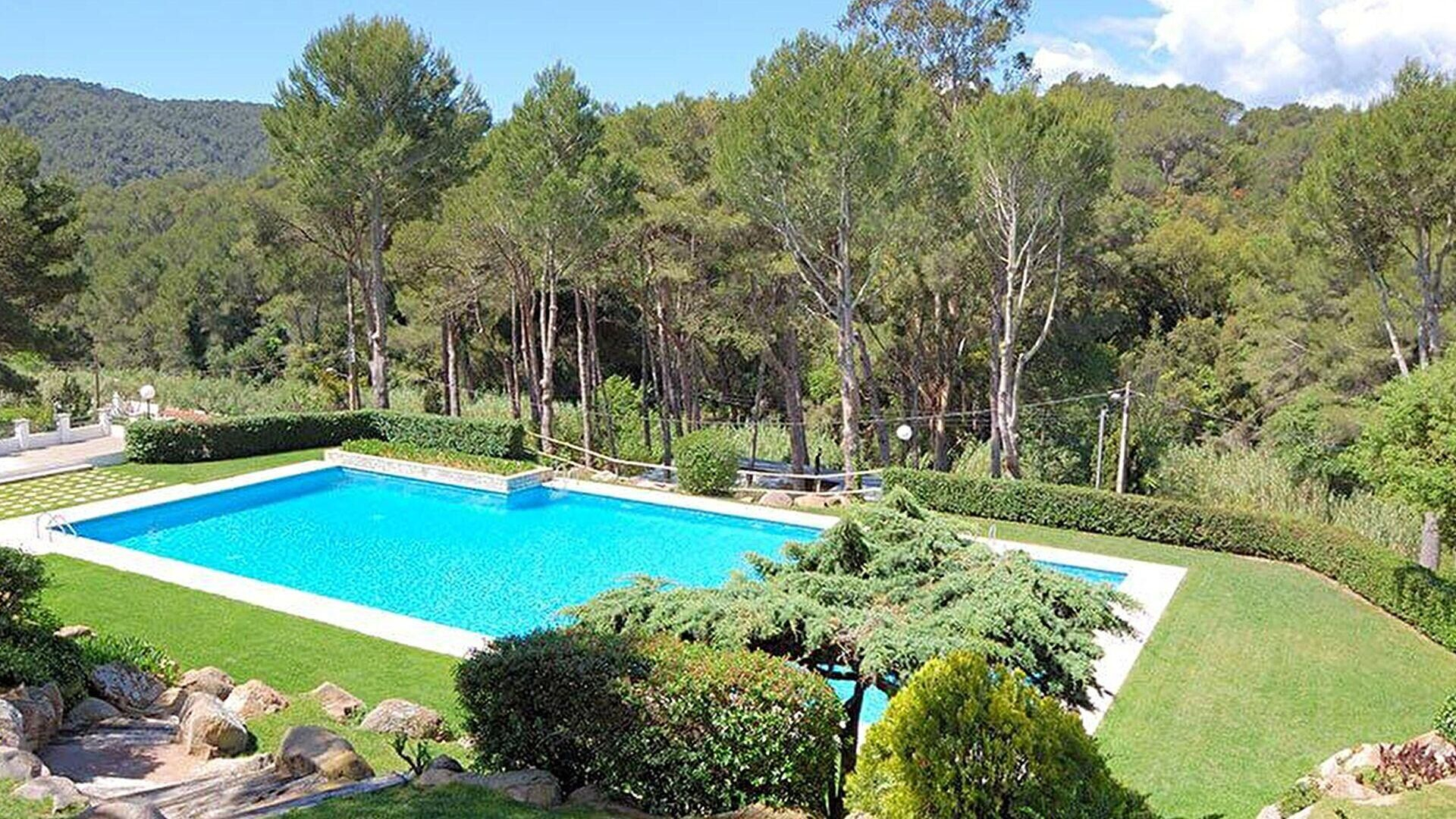 Jardin communautaire, piscine communautaire et meubles de terrasse.