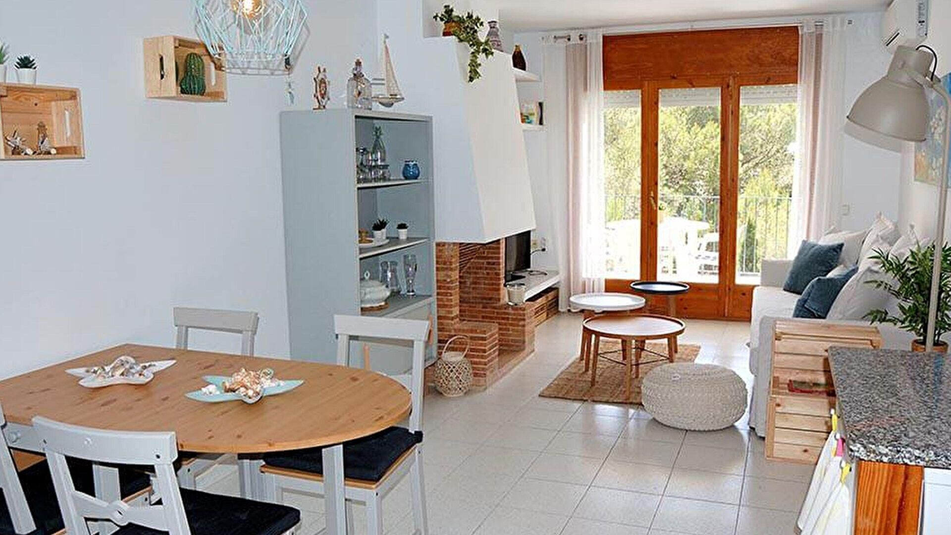 - Salle à manger avec 1 canapé-lit pour 2 personnes, téléviseur, cheminée, sortie sur la terrasse et air conditionnée froid/chaud.