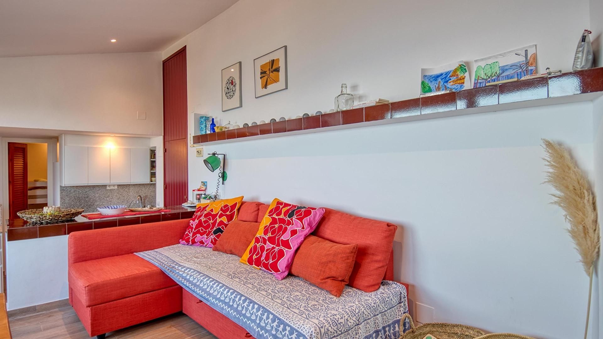 - Cuisine américaine avec plaque de cuisson vitrocéramique, micro-ondes, lave-vaisselle, réfrigérateur combi, vue sur la mer et sortie au jardin privé.