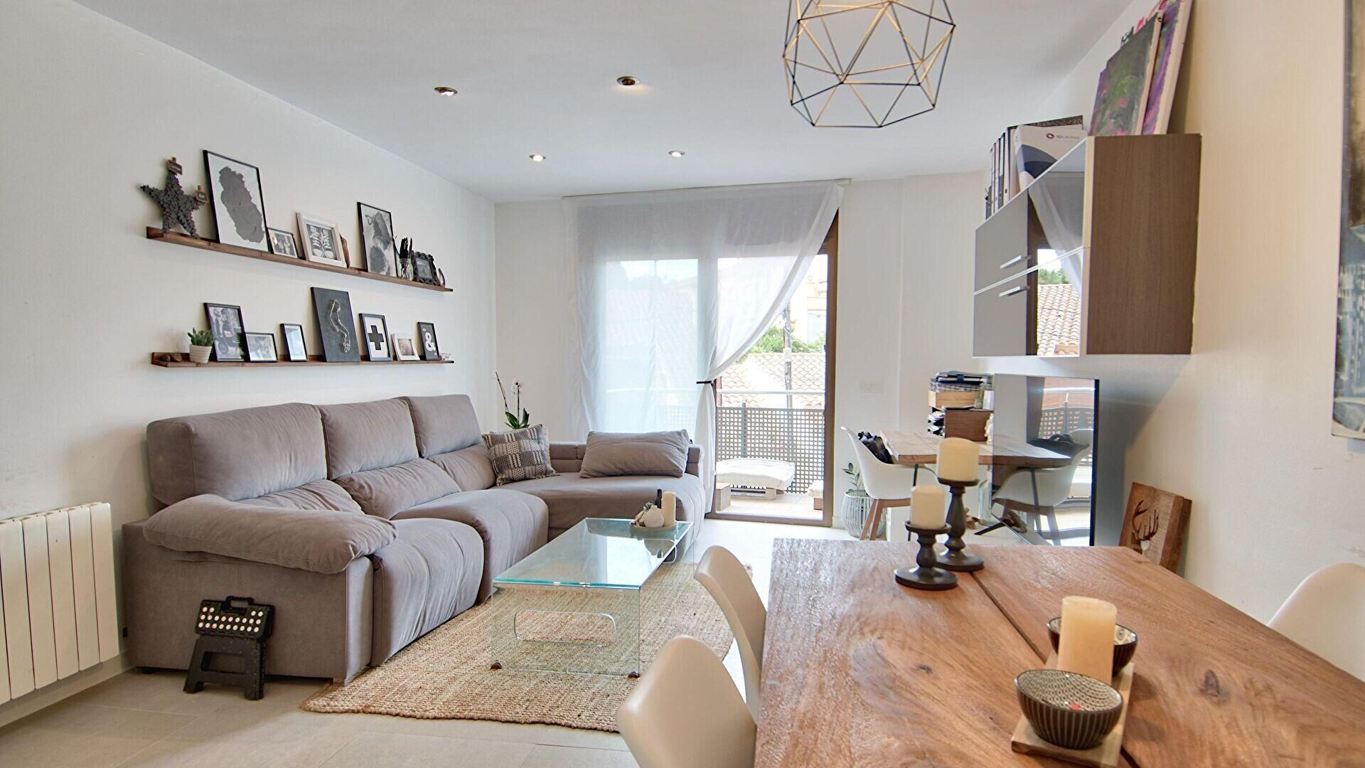 Wohnzimmer-Esszimmer, offene Küche, 2 Schlafzimmer und 2 Bäder mit Dusche.