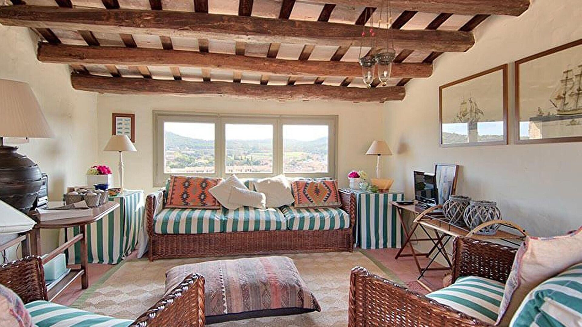 Meerblick, Blick auf die Berge und Dorfansicht.