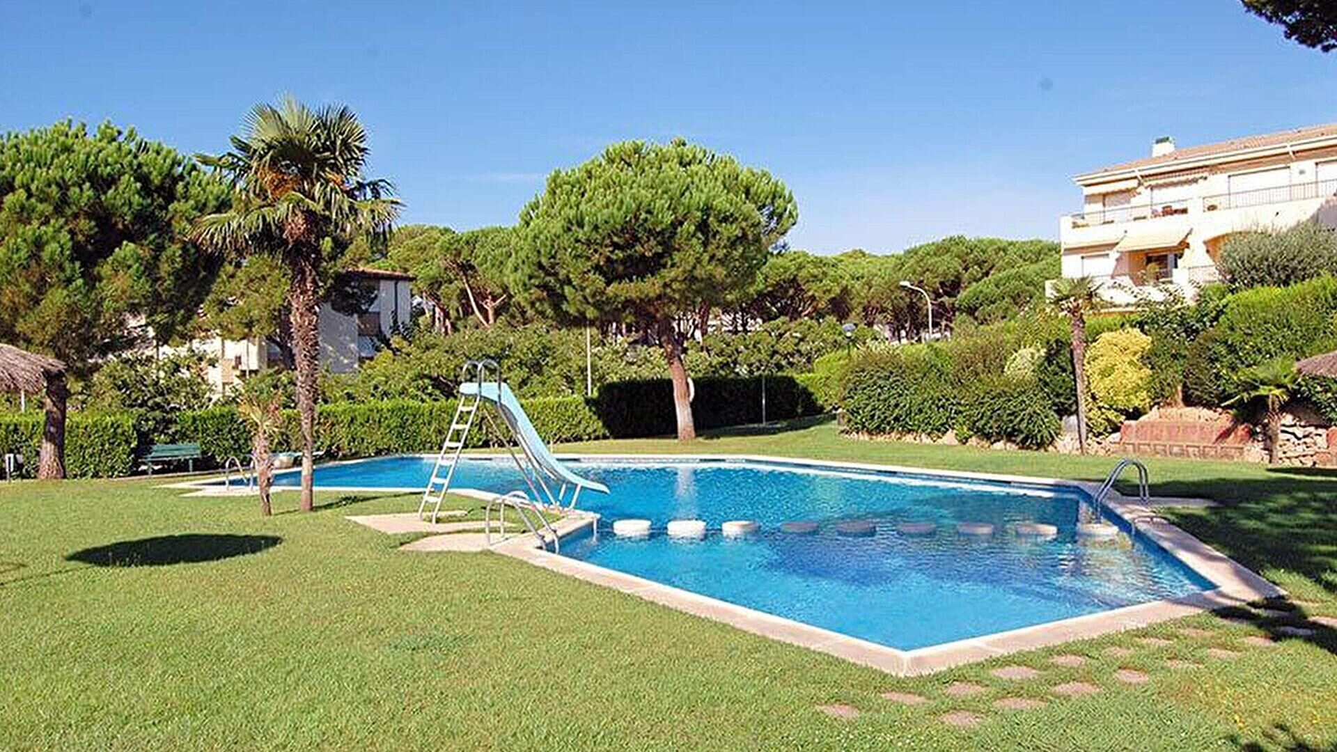 Jardí privat, jardí comunitari, parc infantil privat, piscina comunitària i mobles de terrassa.