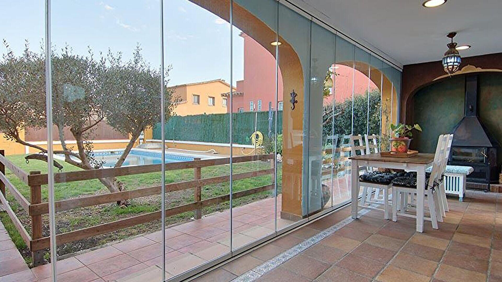Jardín con piscina, terraza, comedor, sala de estar, cocina office, 3 dormitorios, 2 baños con ducha, despensa, garaje y despacho.