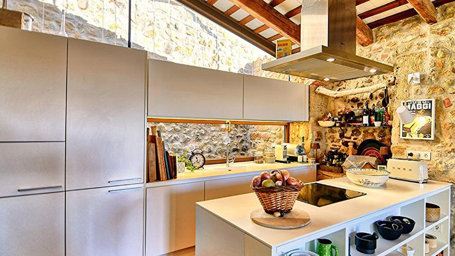 Étage 1- Cuisine américaine avec plaque de cuisson vitrocéramique.