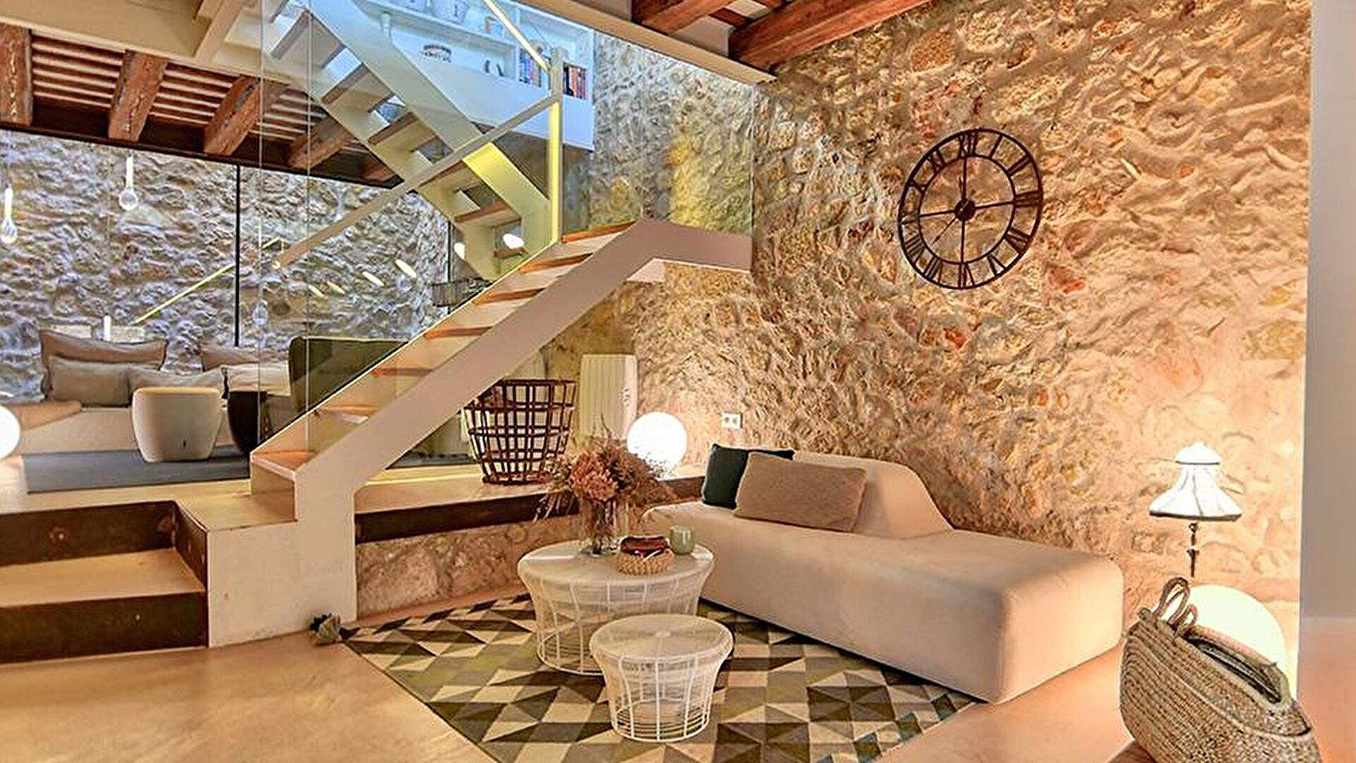 Terrasse, salle à manger, 2 salons, cuisine américaine, 3 chambres, 1 salle de bain, 1 salle de bain avec douche, 1 toilette, vestiaire et bureau.