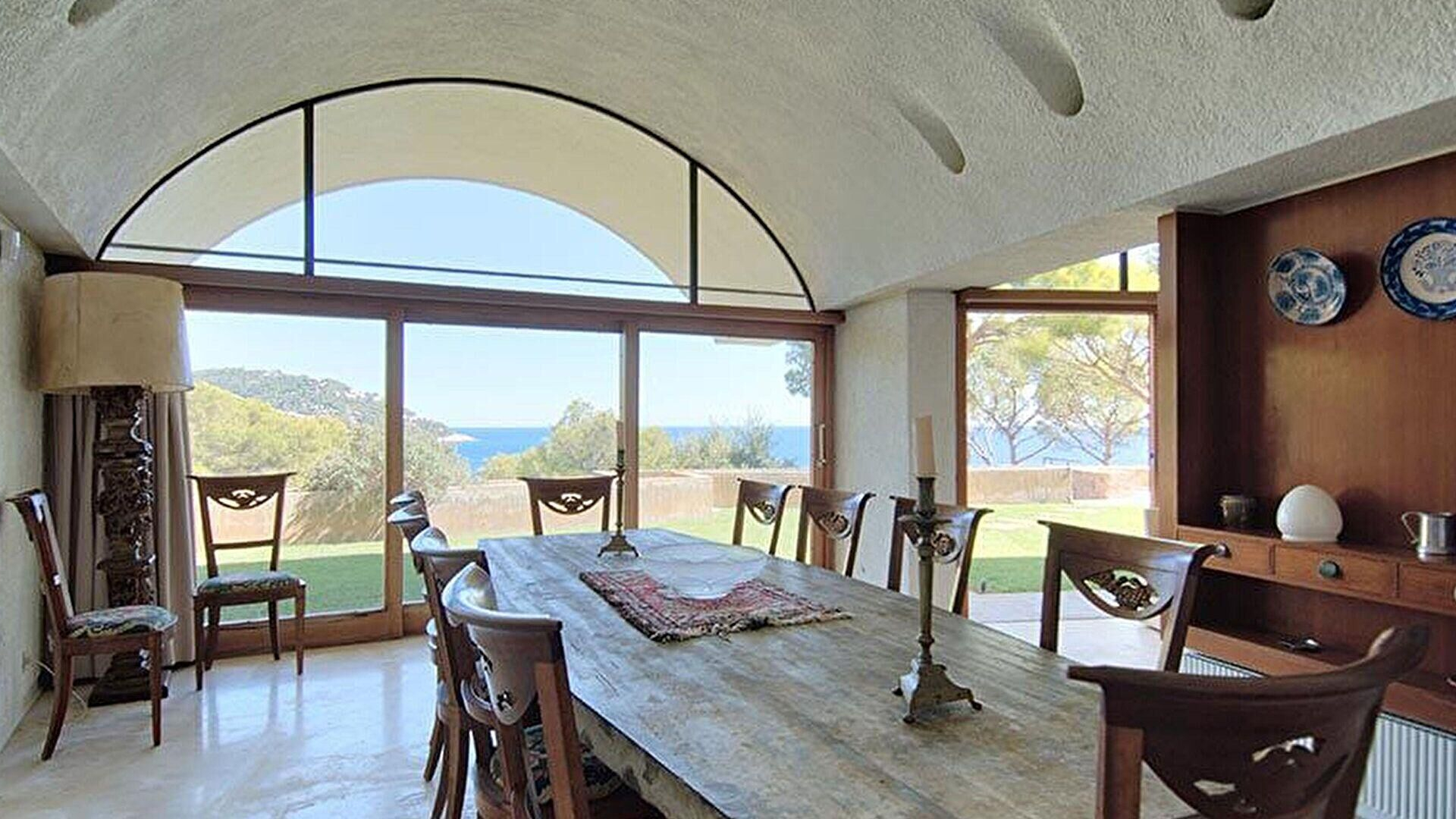 - Salle à manger avec sortie sur le porche, sortie au jardin privé et vue sur la mer.