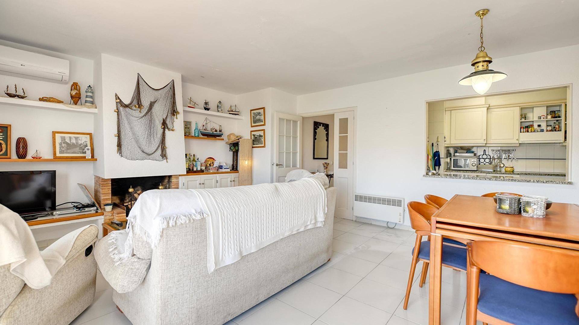 Floor 0- Living/dining room with access to the terrace and fire place.