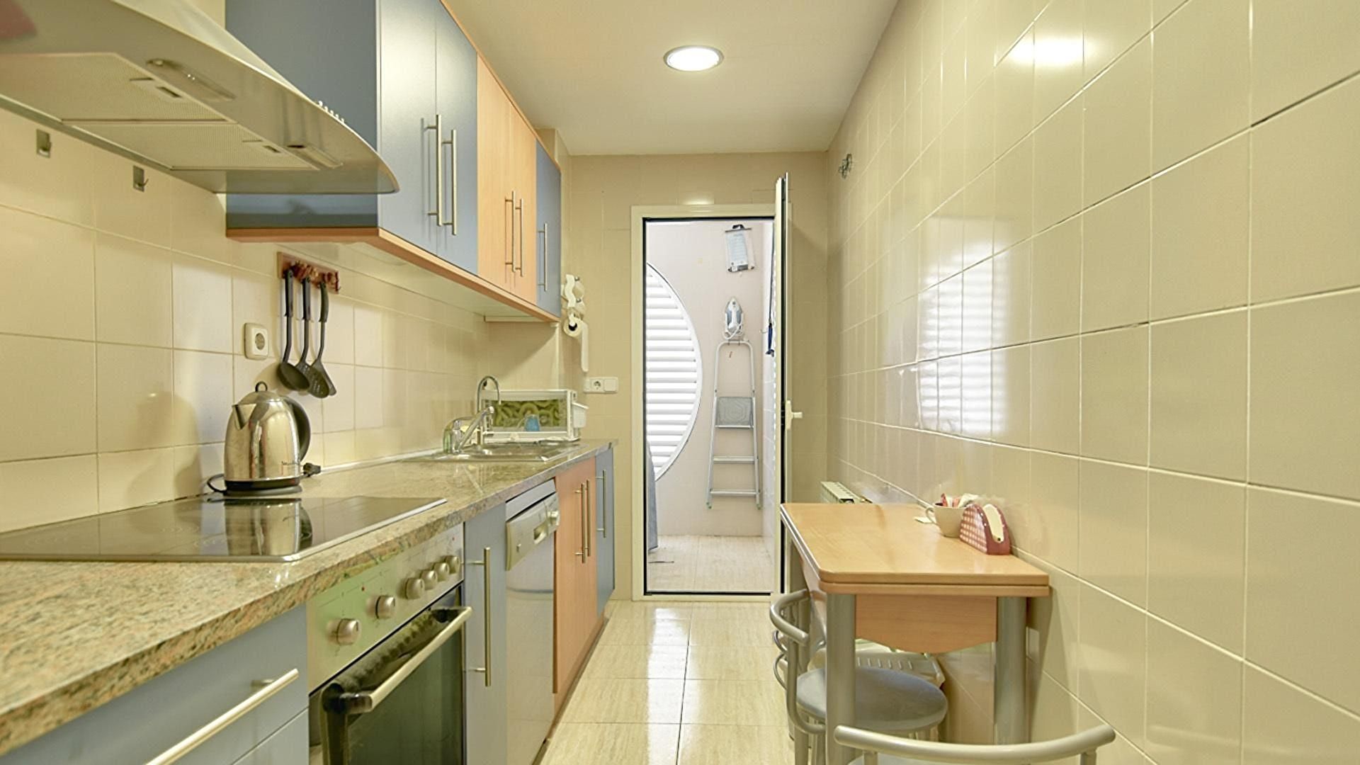 - Kitchen with eating area with clothes washing basin and ceramic hobb.