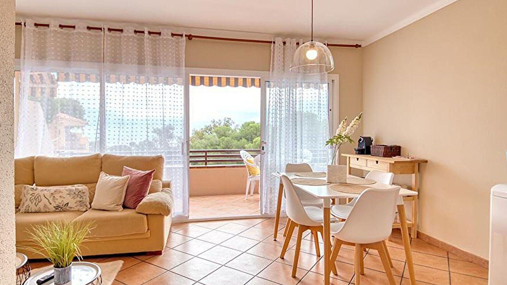 - Living/dining room with sea view and access to the terrace.