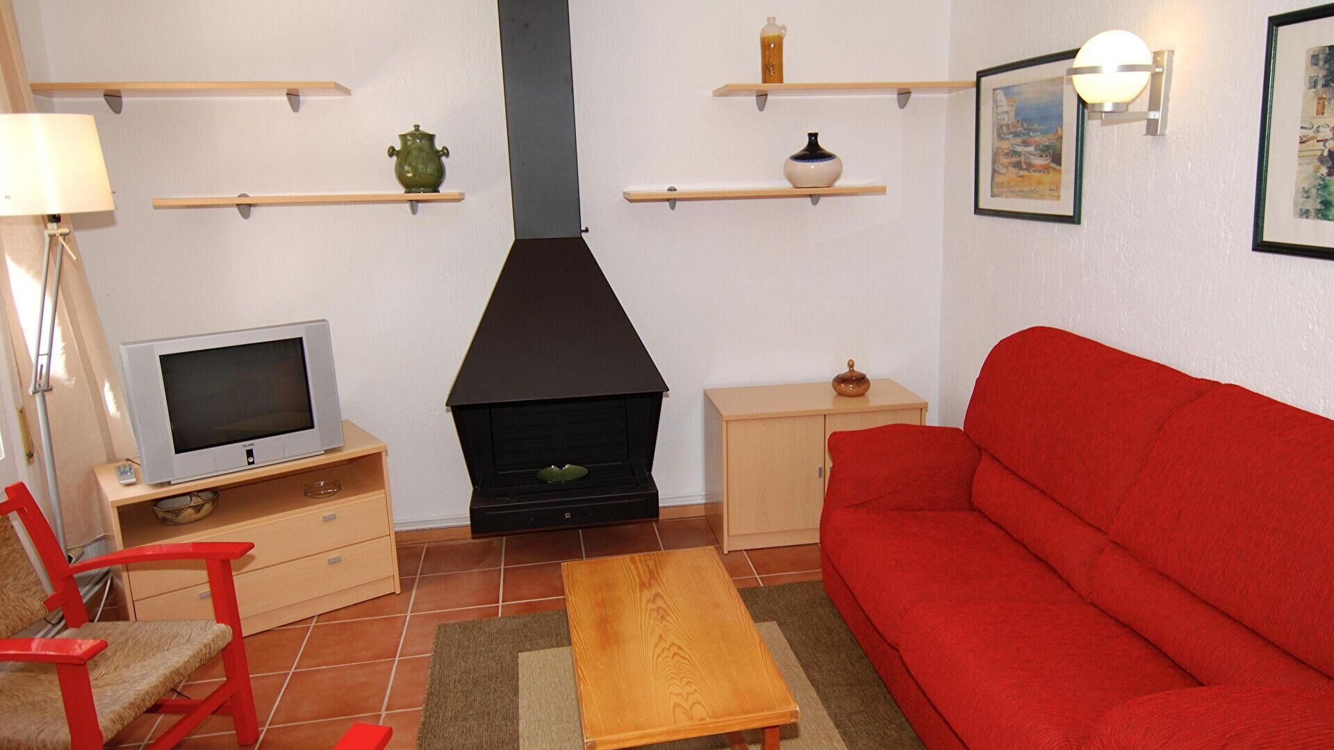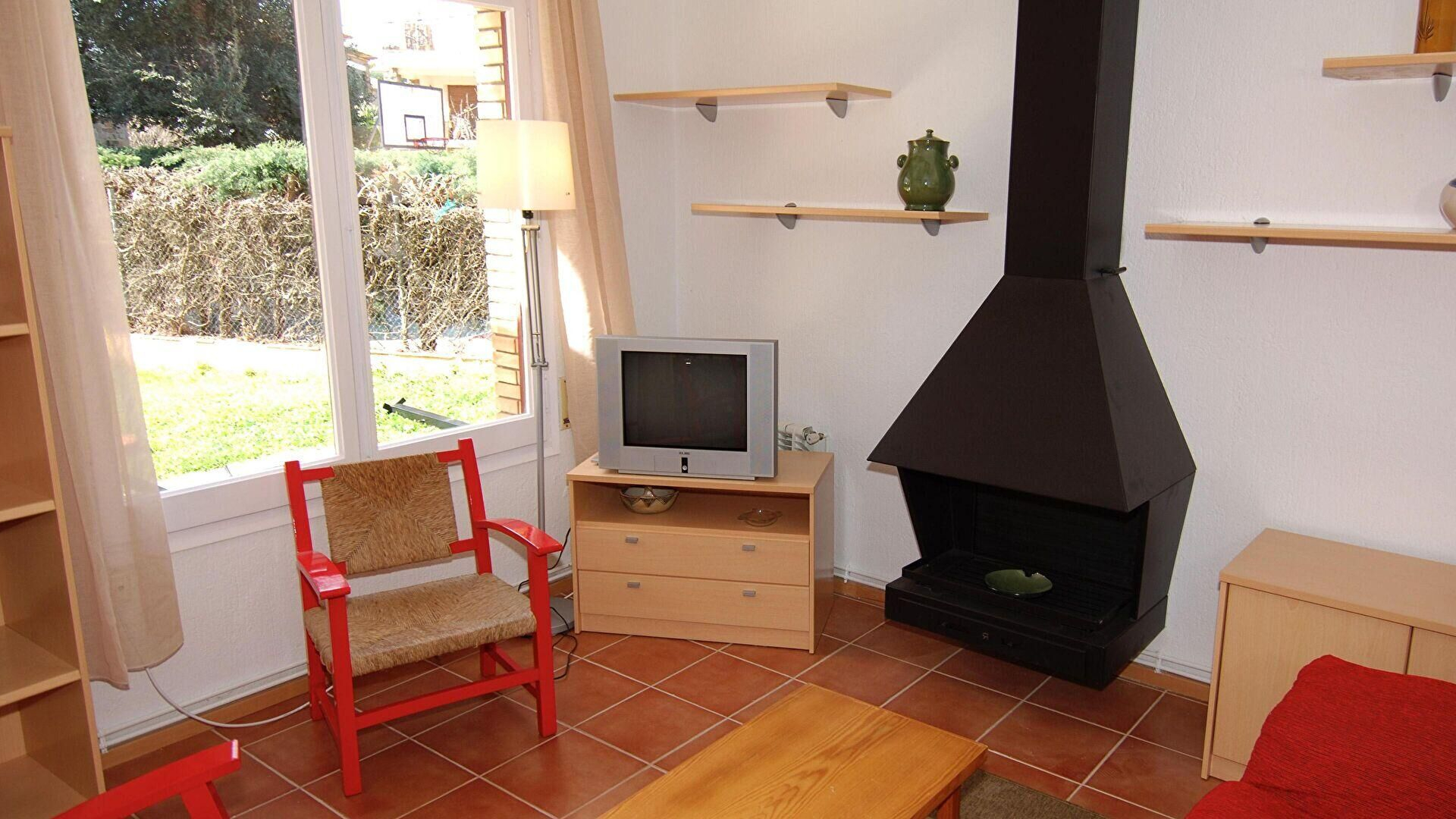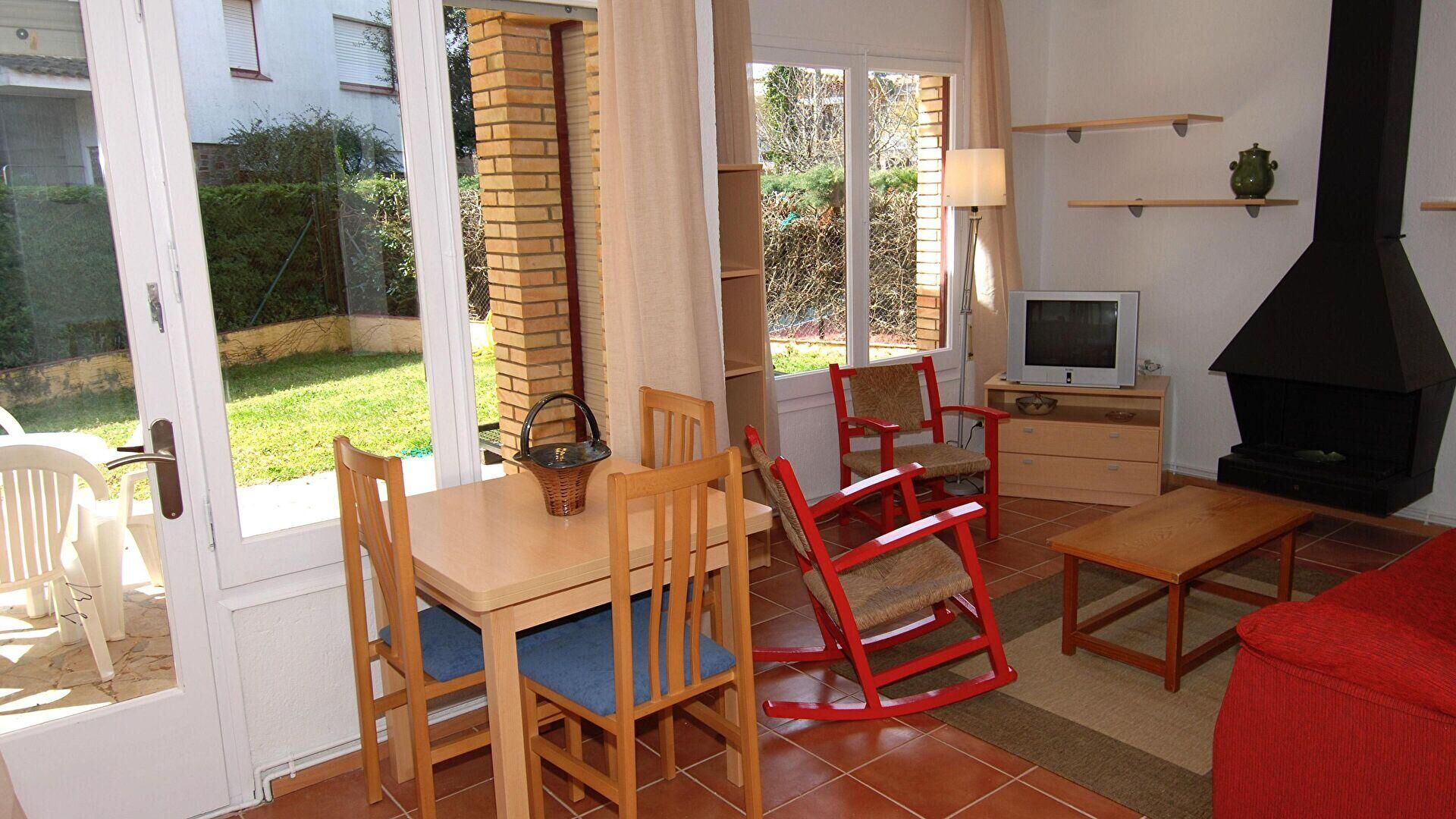 - Living/dining room, television, fire place, access to the terrace and access to the patio.