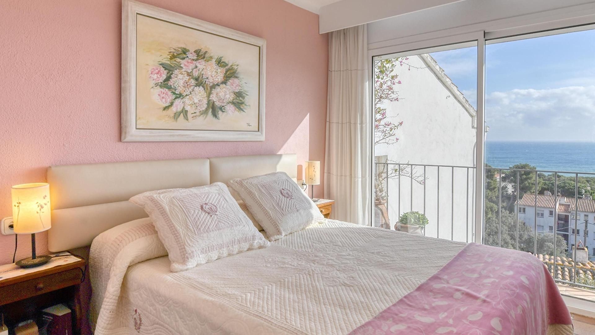 - Bedroom with 1 double bed, access to the terrace and sea view.