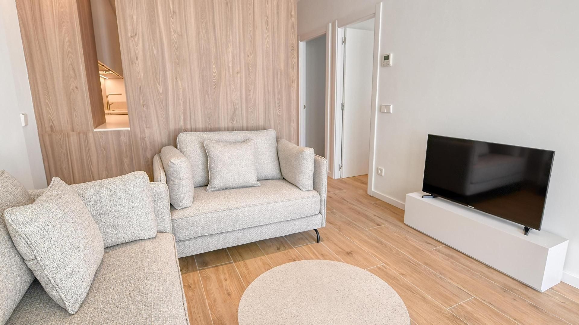- Lounge with television and access to the terrace.
