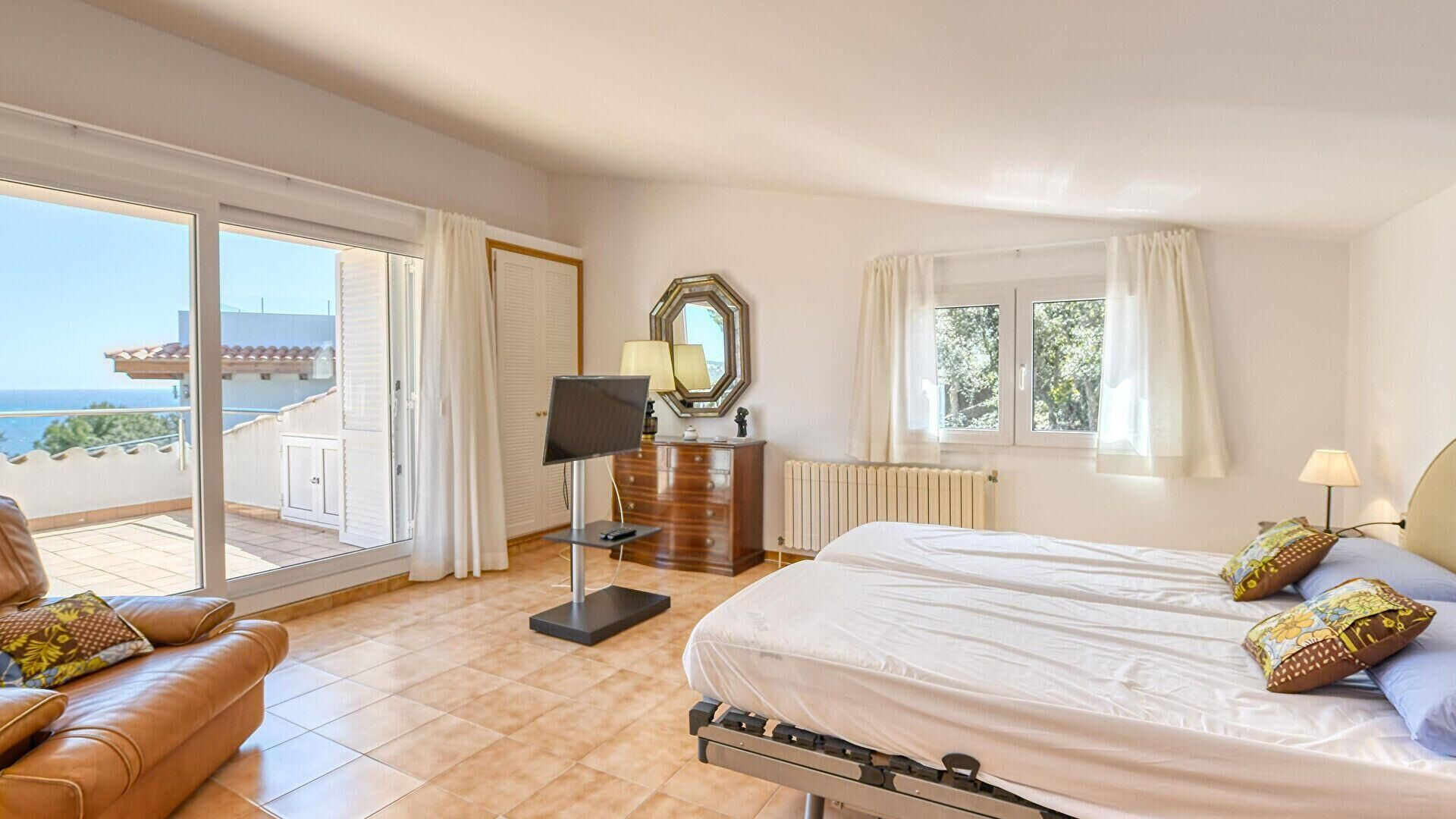 - Bedroom with 1 double bed, sea view and access to sunbathing terrace.