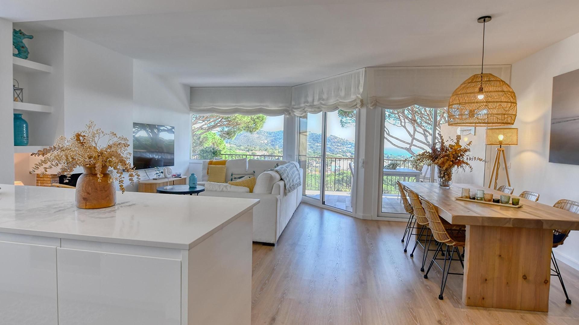 - Living/dining room with television, access to the terrace and sea view.