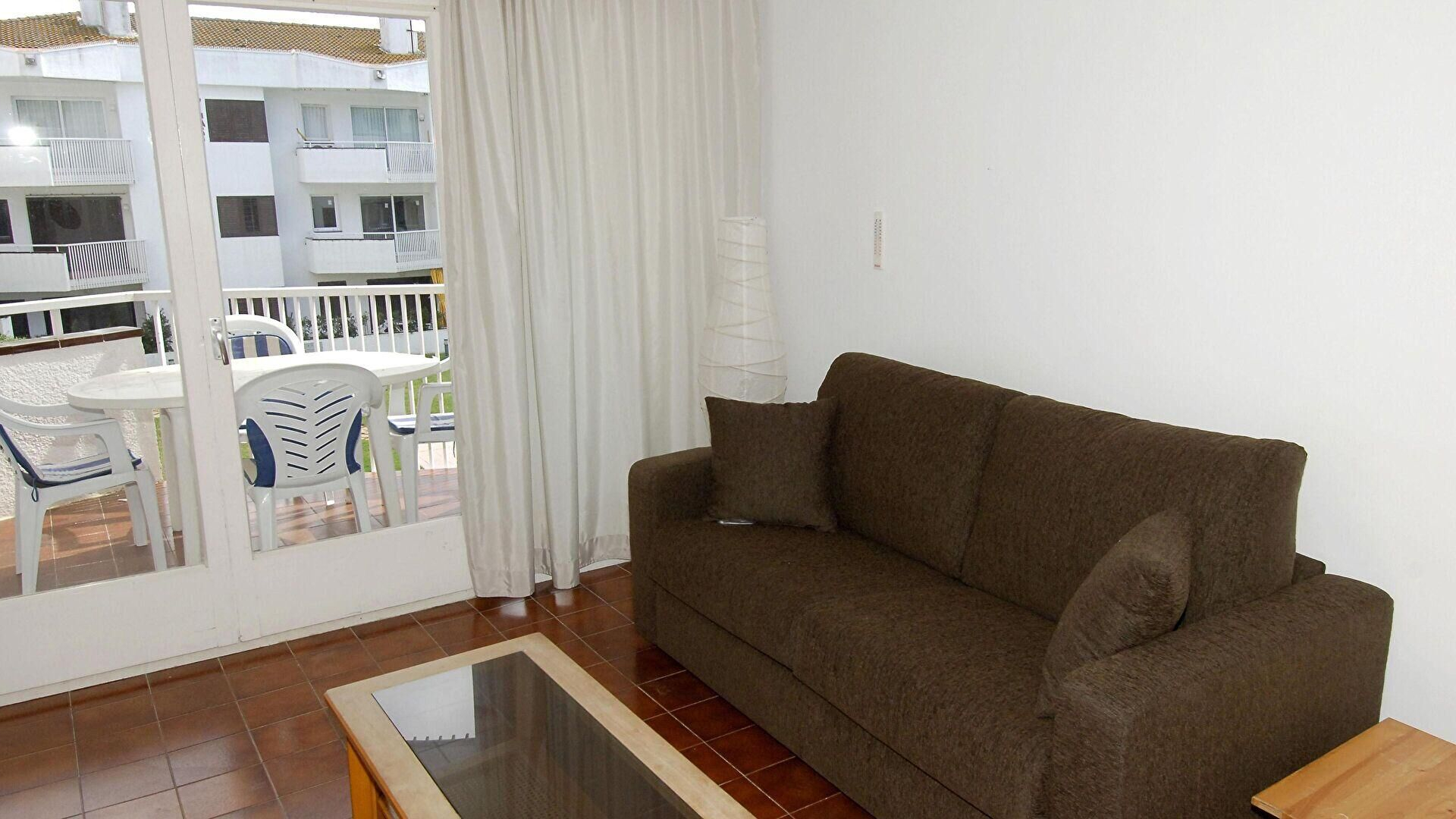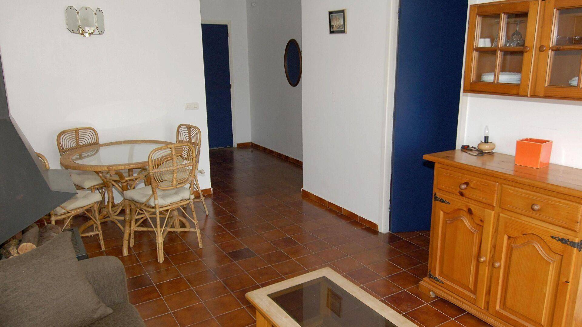 - Living/dining room with sofa bed for two, fire place, television and access to the terrace.