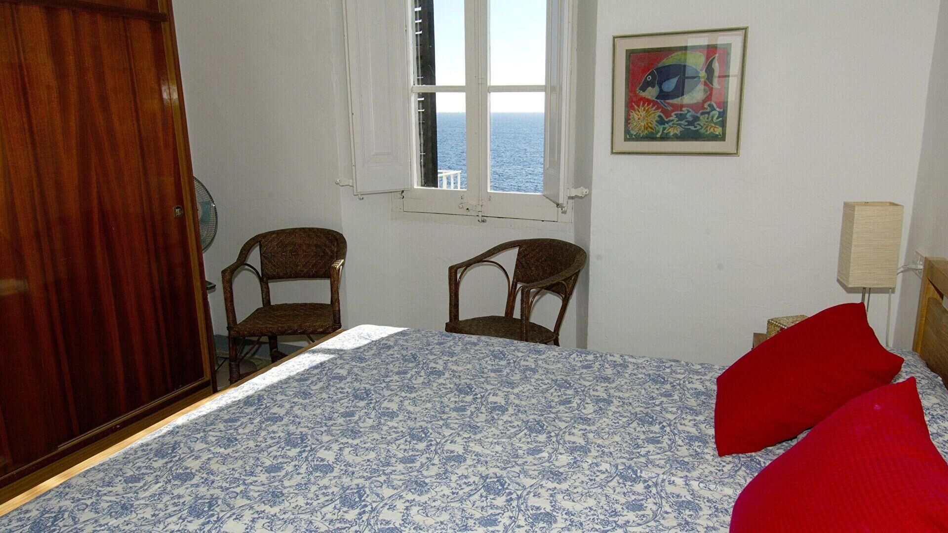 - Bedroom with 1 single bed, access to the balcony and sea view.