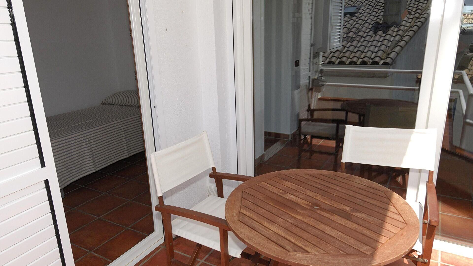- Bedroom with 1 double bed, bathroom (en suite) and access to the balcony.
