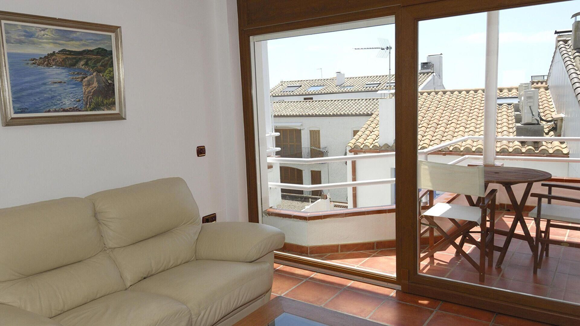 - Living/dining room, access to the terrace and television.