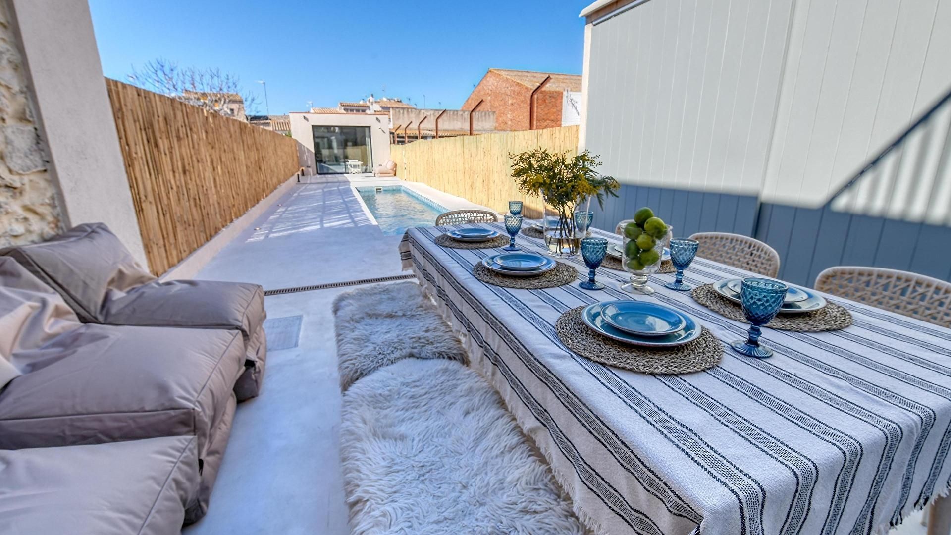 Private garden, chill-out, private swimming pool and terrace furniture.