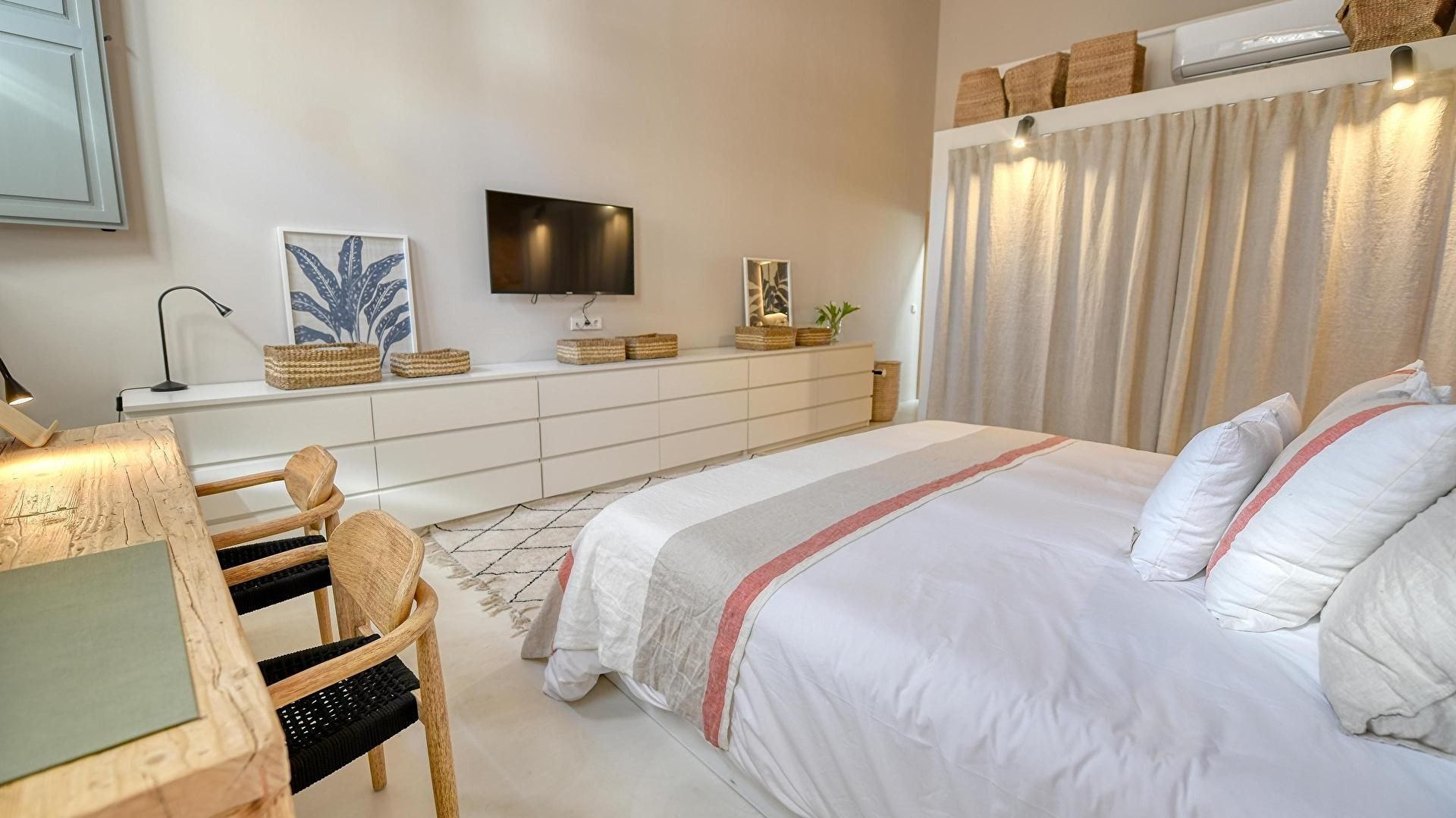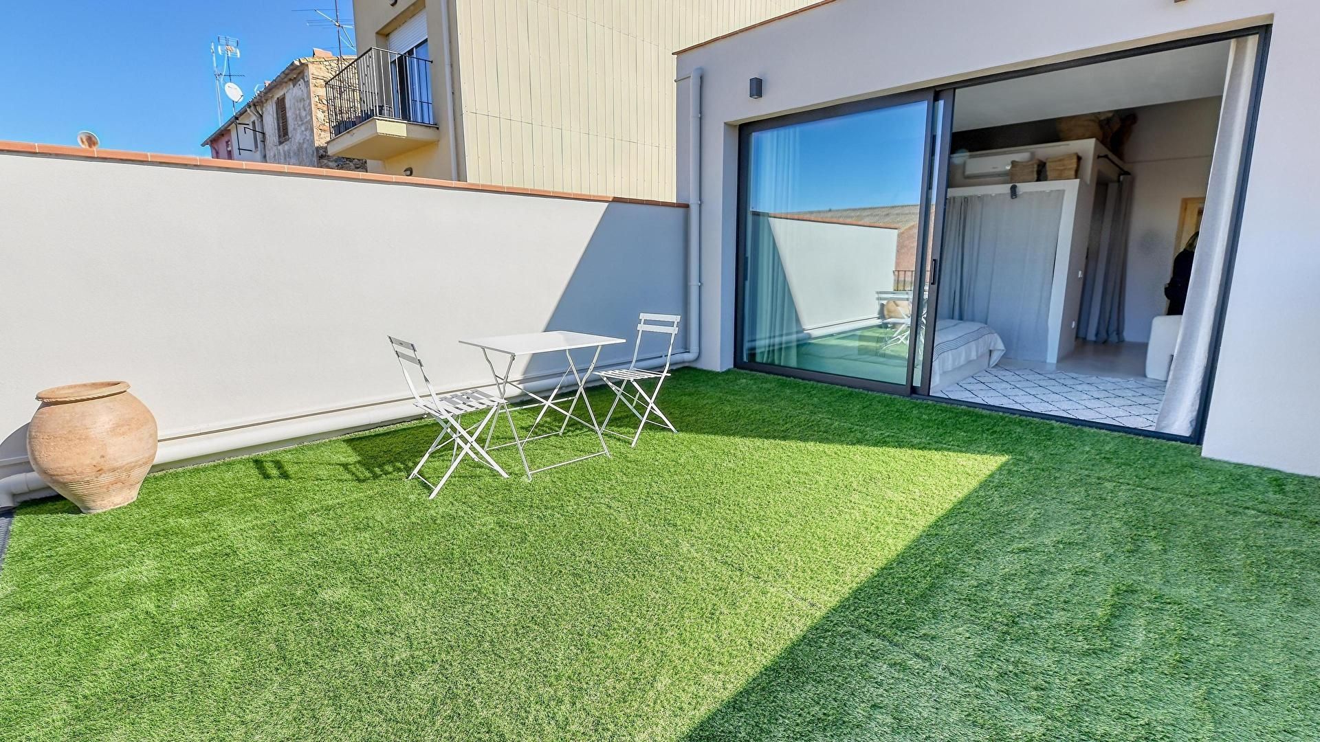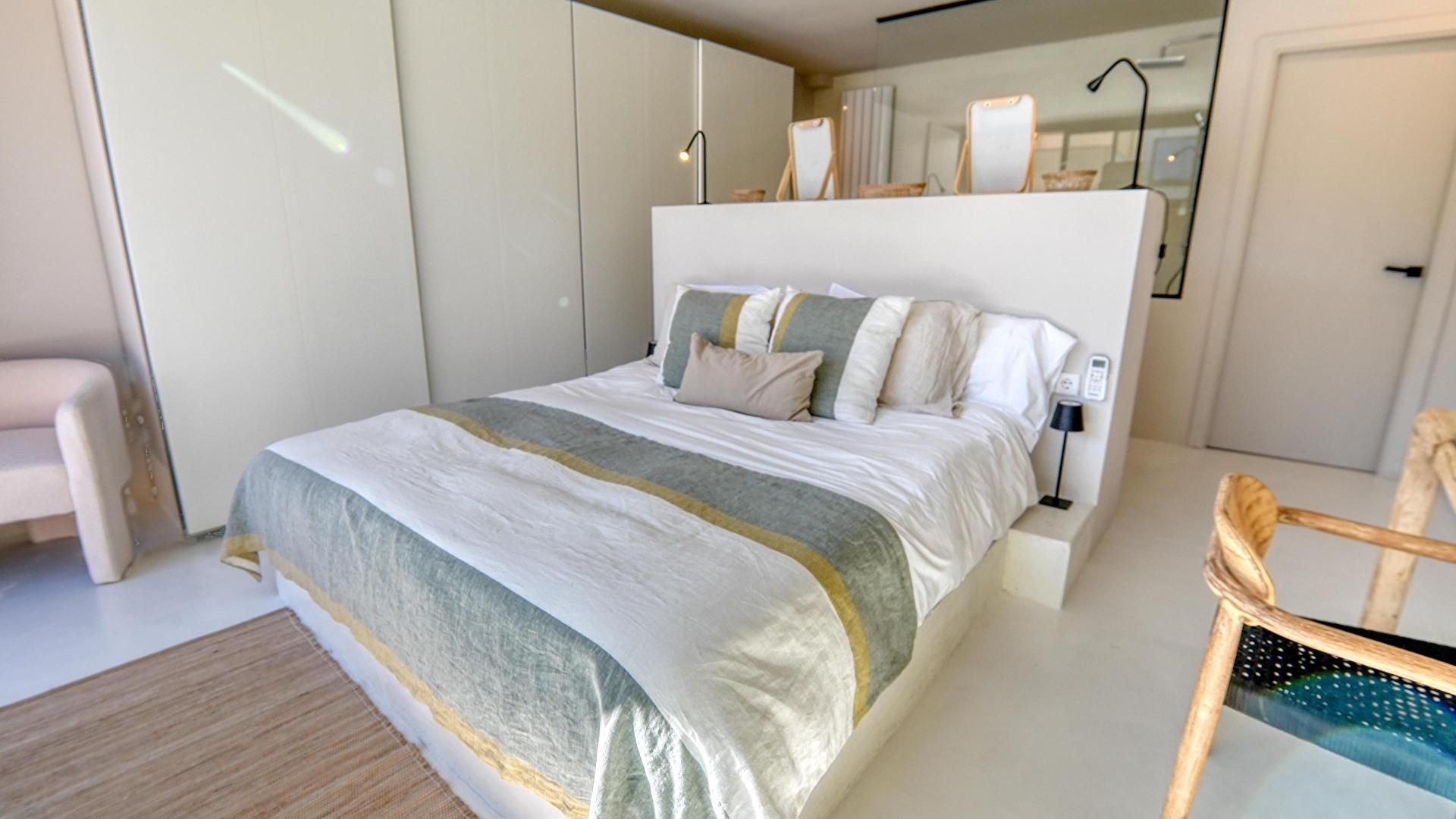 Floor 1- Bedroom with 1 double bed, bathroom (en suite) and access to sunbathing terrace.