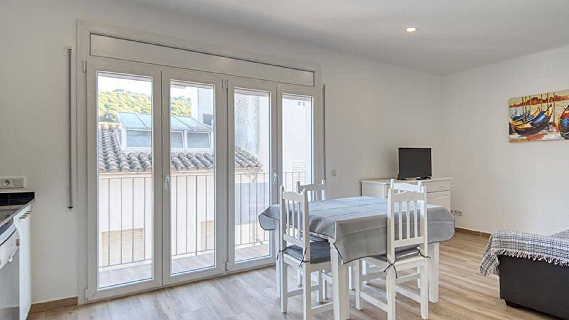 - Living/dining room with television, air conditionning and heating unit and access to the balcony.