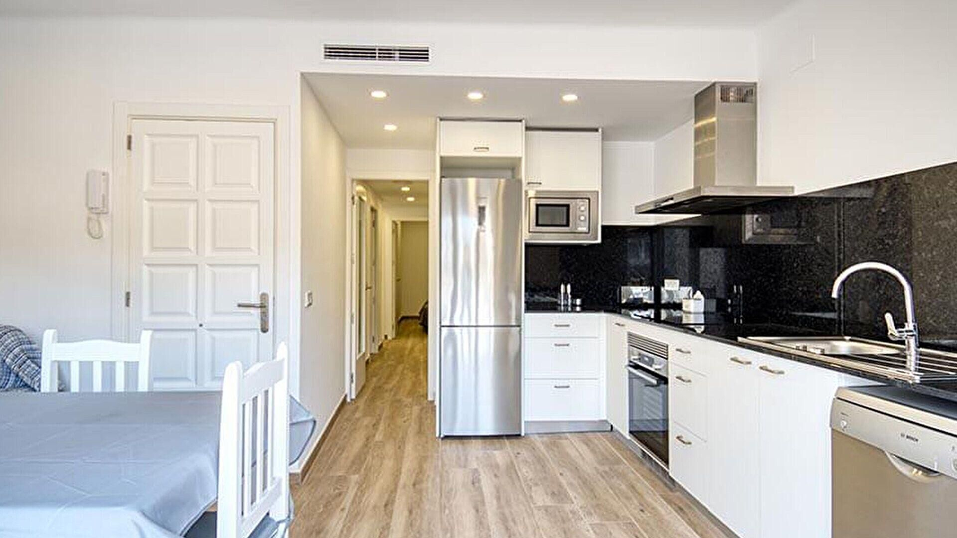 - Open american style kitchen with induction hobb, oven, microwave, fridge freezer, dishwasher and access to the balcony.