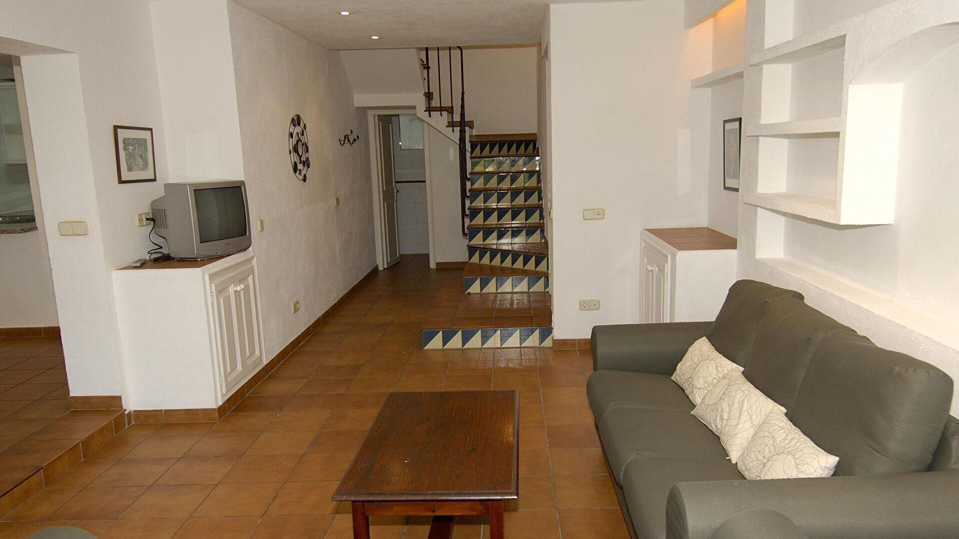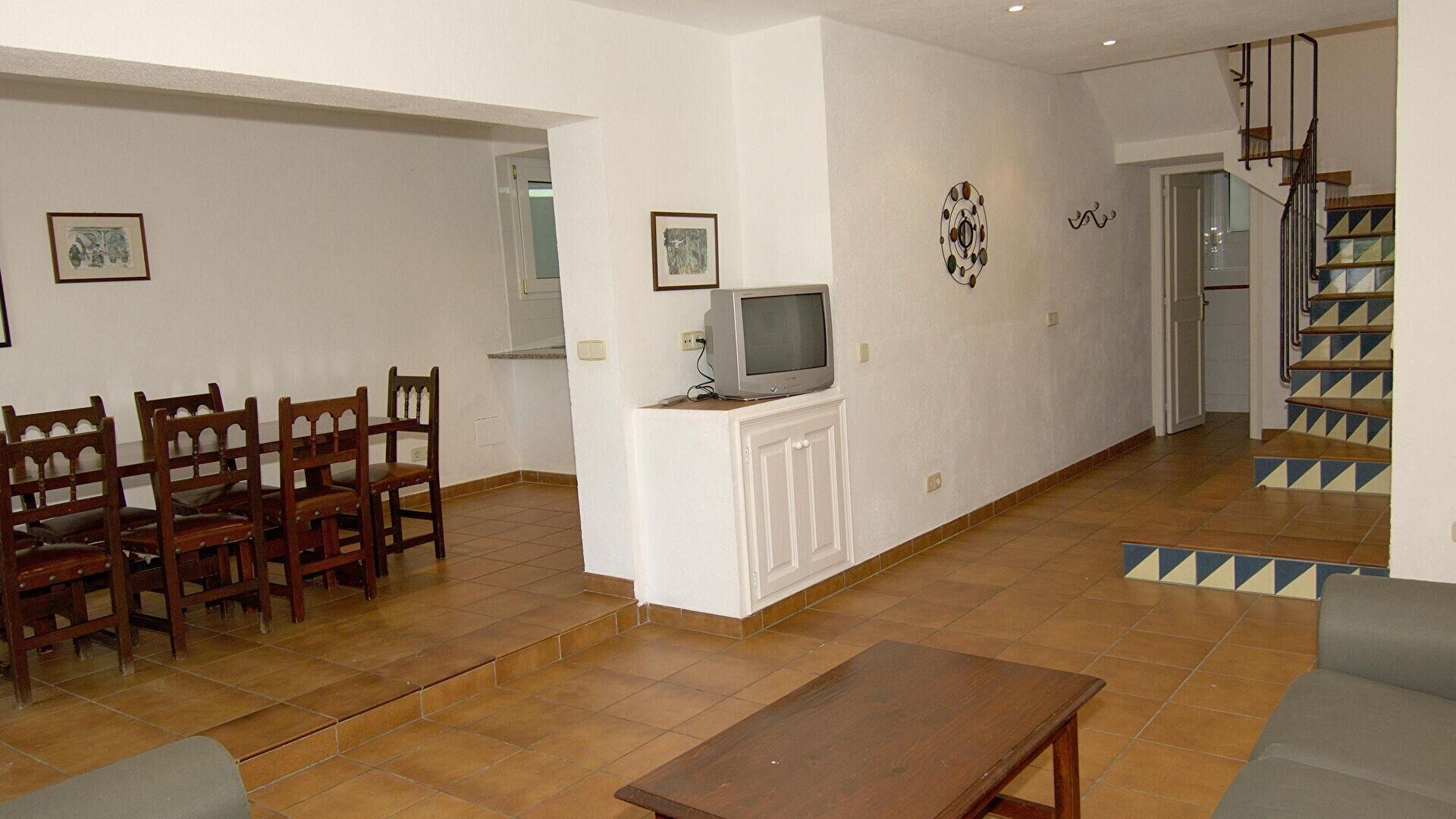 - Wohnzimmer-esszimmer, ausgang zur terrasse und fernseher.