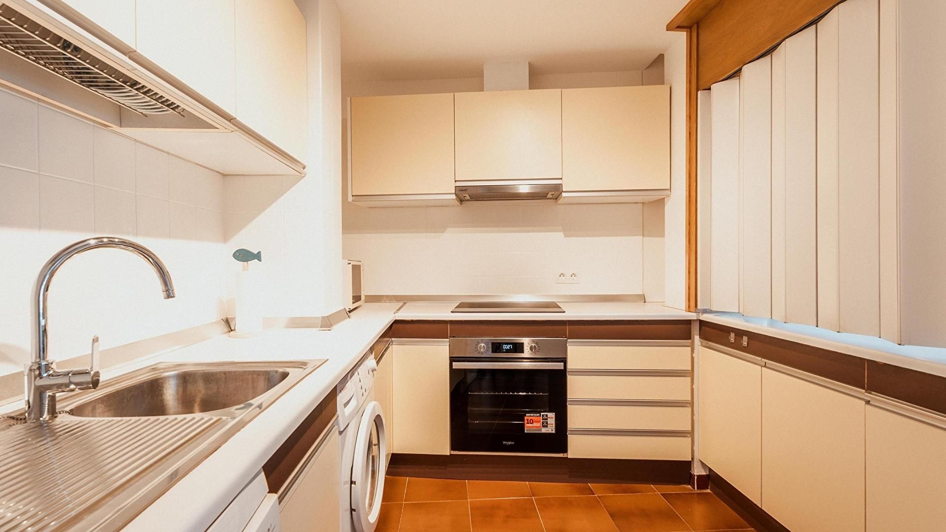 Glaskeramik-Kochfeld, Ofen, Waschmaschine und Spülmaschine.