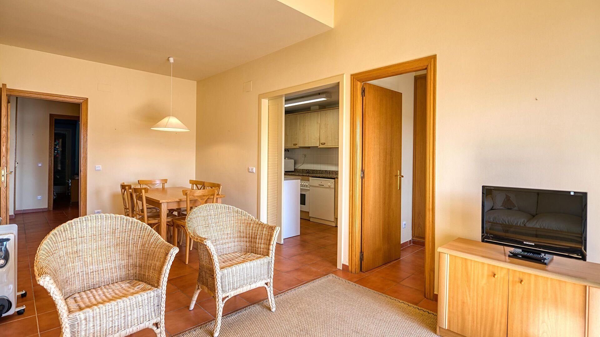 - Wohnzimmer-esszimmer, fernseher und ausgang zum balkon.