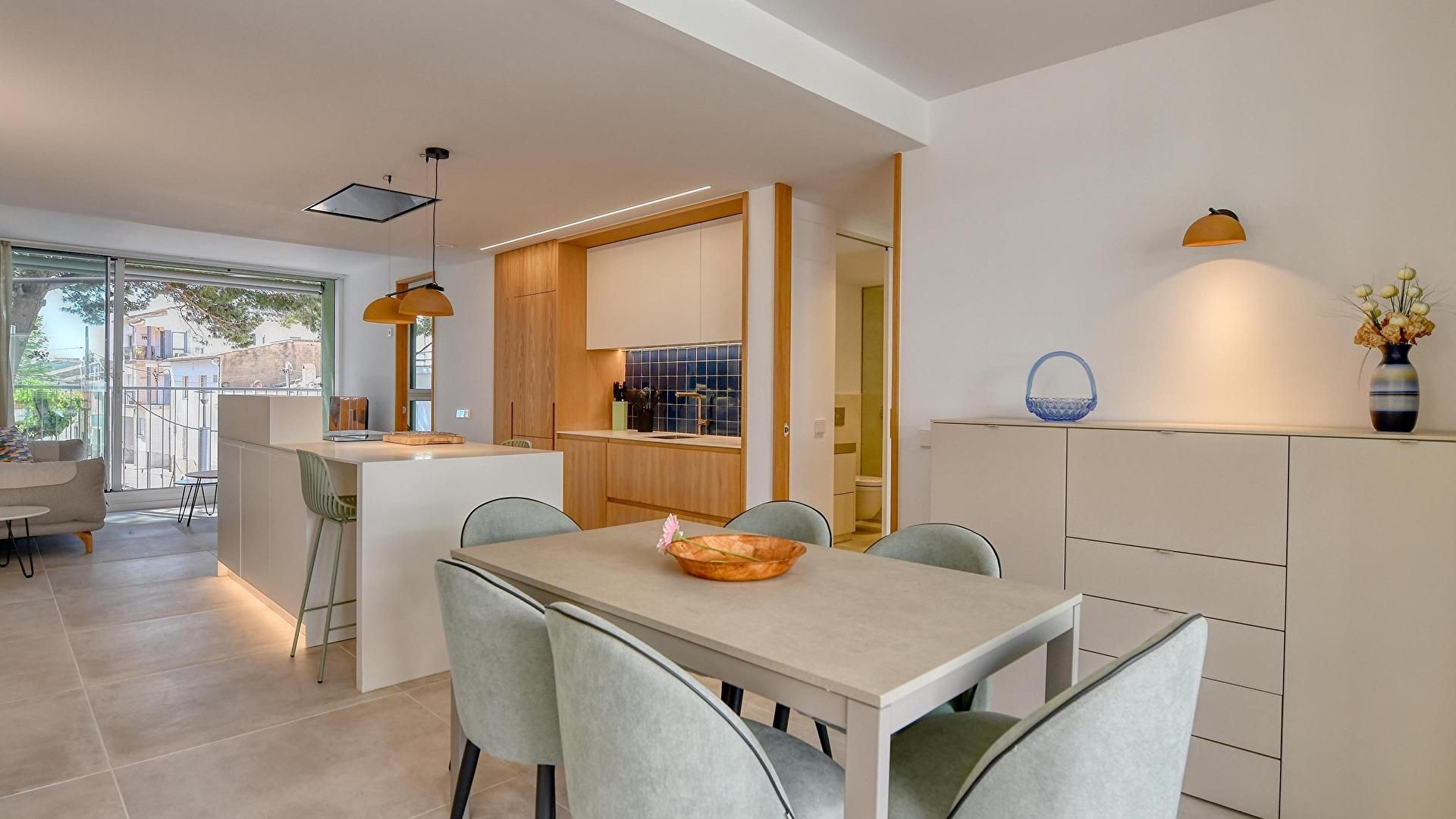 - Offene küche mit induktionskochfeld, spülmaschine, kombi-kühlschrank und ausgang zur terrasse.
