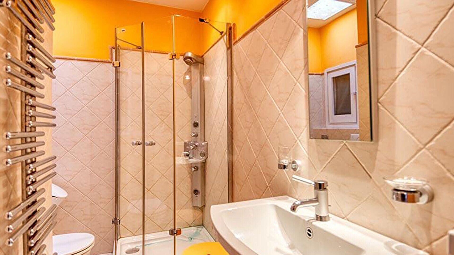 Terrasse, Terrasse-Solarium, Wohnzimmer-Esszimmer, offene Küche, 3 Schlafzimmer, 1 Bad mit Badewanne und 1 Bad mit Dusche.