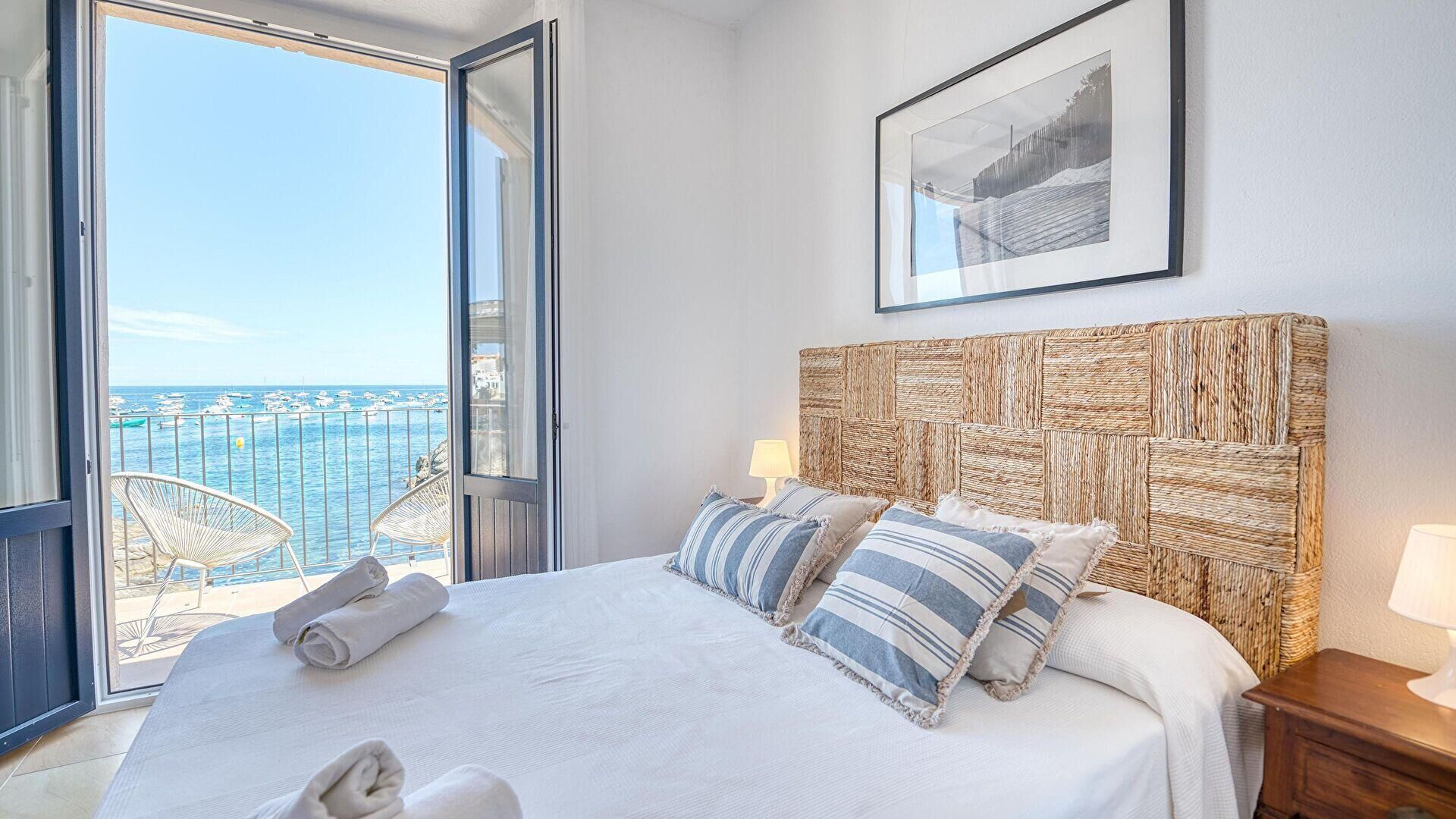 - Schlafzimmer mit 1 doppelbett, meerblick und ausgang zum balkon.