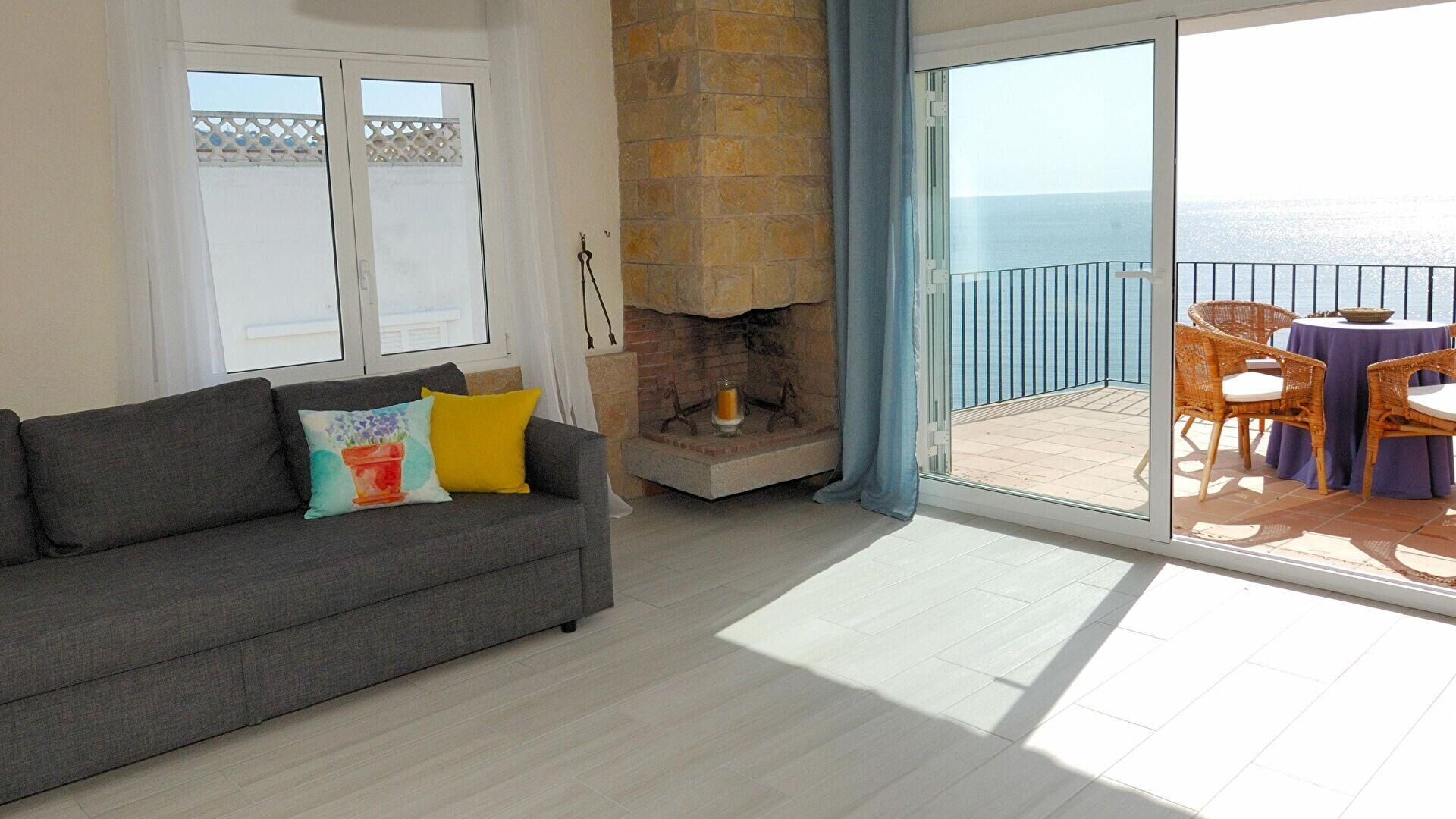 • Studio mit 1 doppelschlafsofa, kamin, meerblick, ausgang zur terrasse und kalte und heisse klimaanlage.