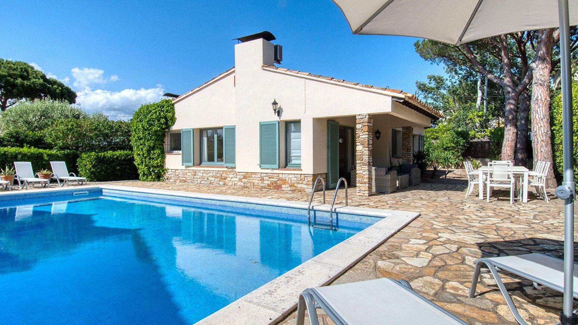 " Accommodation was absolutely brilliant. Very spacious bungalow with private swimming pool. Beautiful garden too. Situated in a very quiet location, added bonus was having a garage which we used for our hire car. Highly recommend."