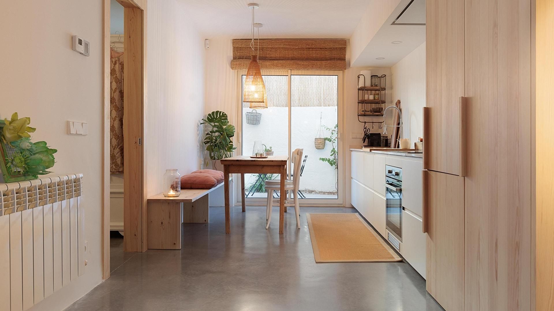 • Offene küche mit elektrische kochfeld, ofen, spülmaschine, kombi-kühlschrank, separate waschküche, waschmaschine und ausgang zum patio.