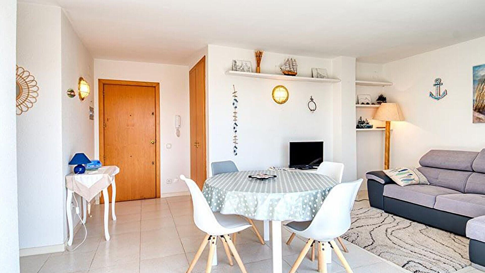 - Wohnzimmer-esszimmer mit 1 schlafsofà für zwei personen, ausgang zur terrasse, fernseher und kalte und heisse klimaanlage.
