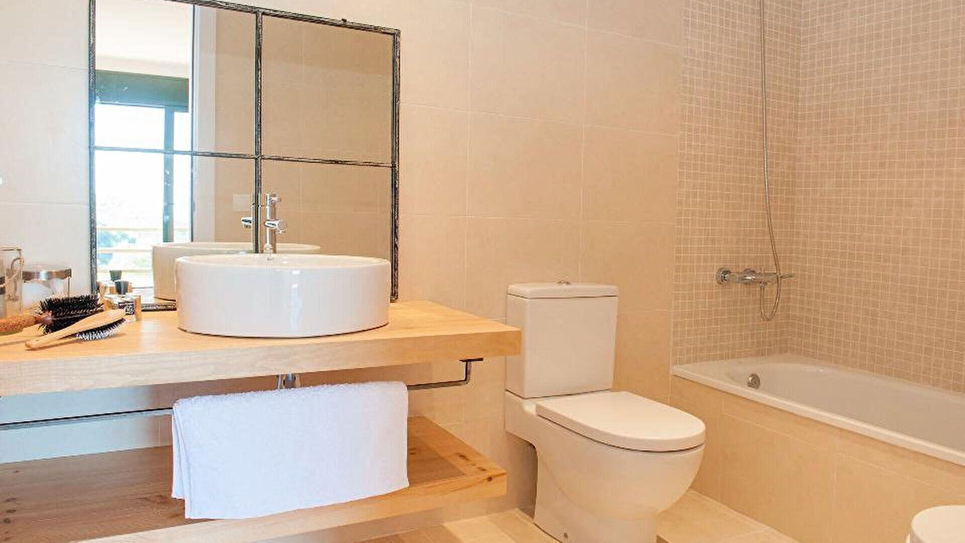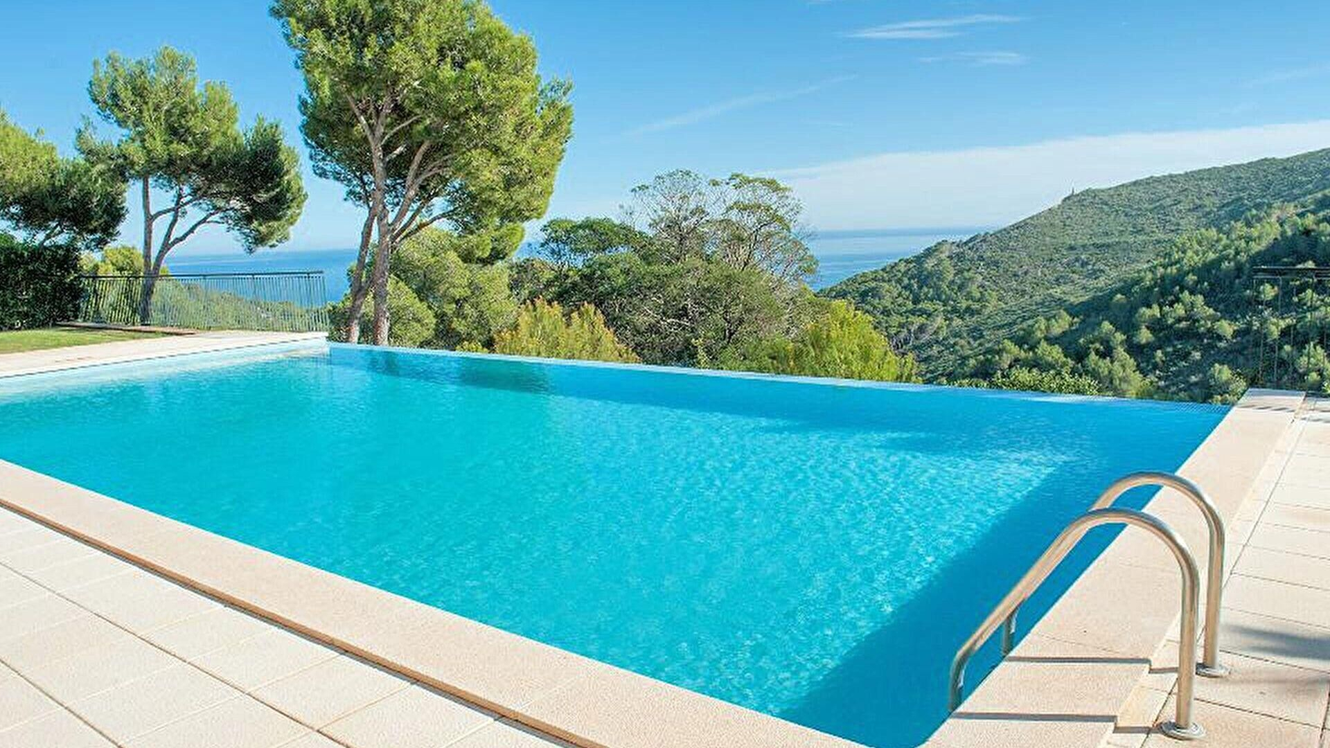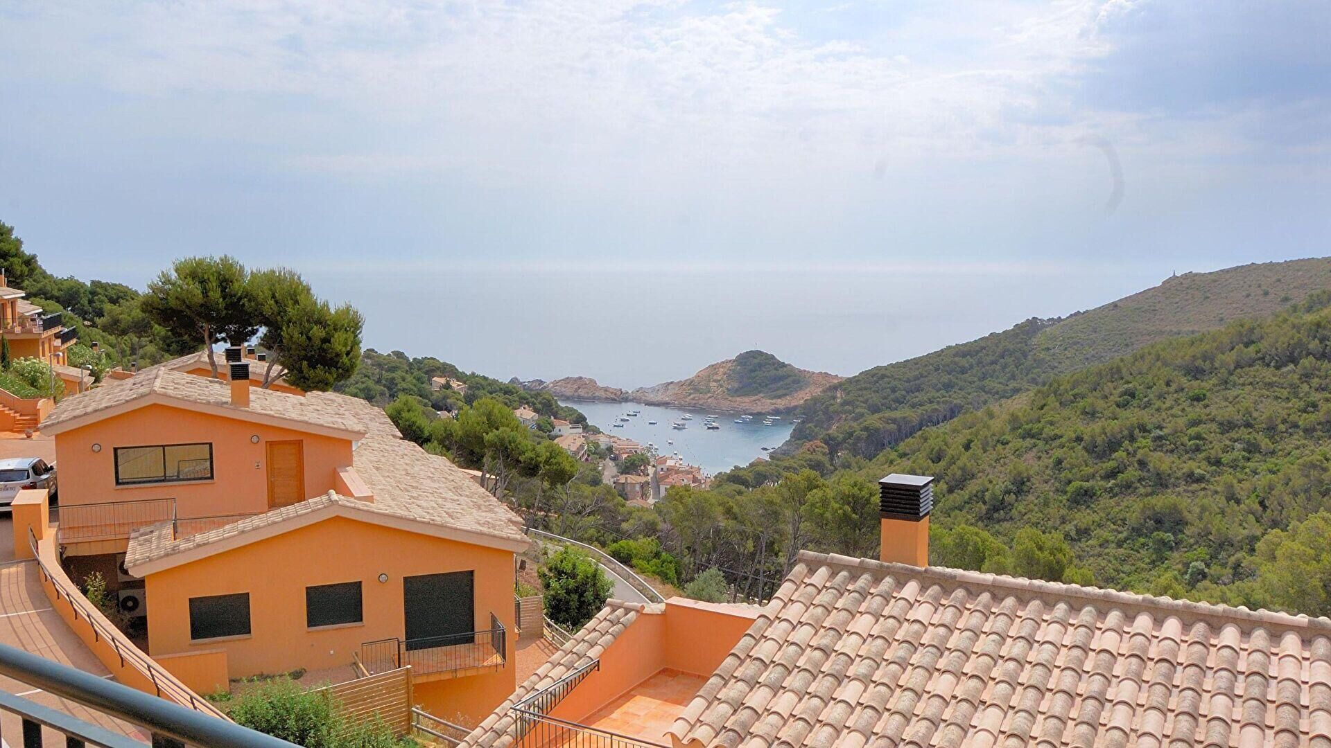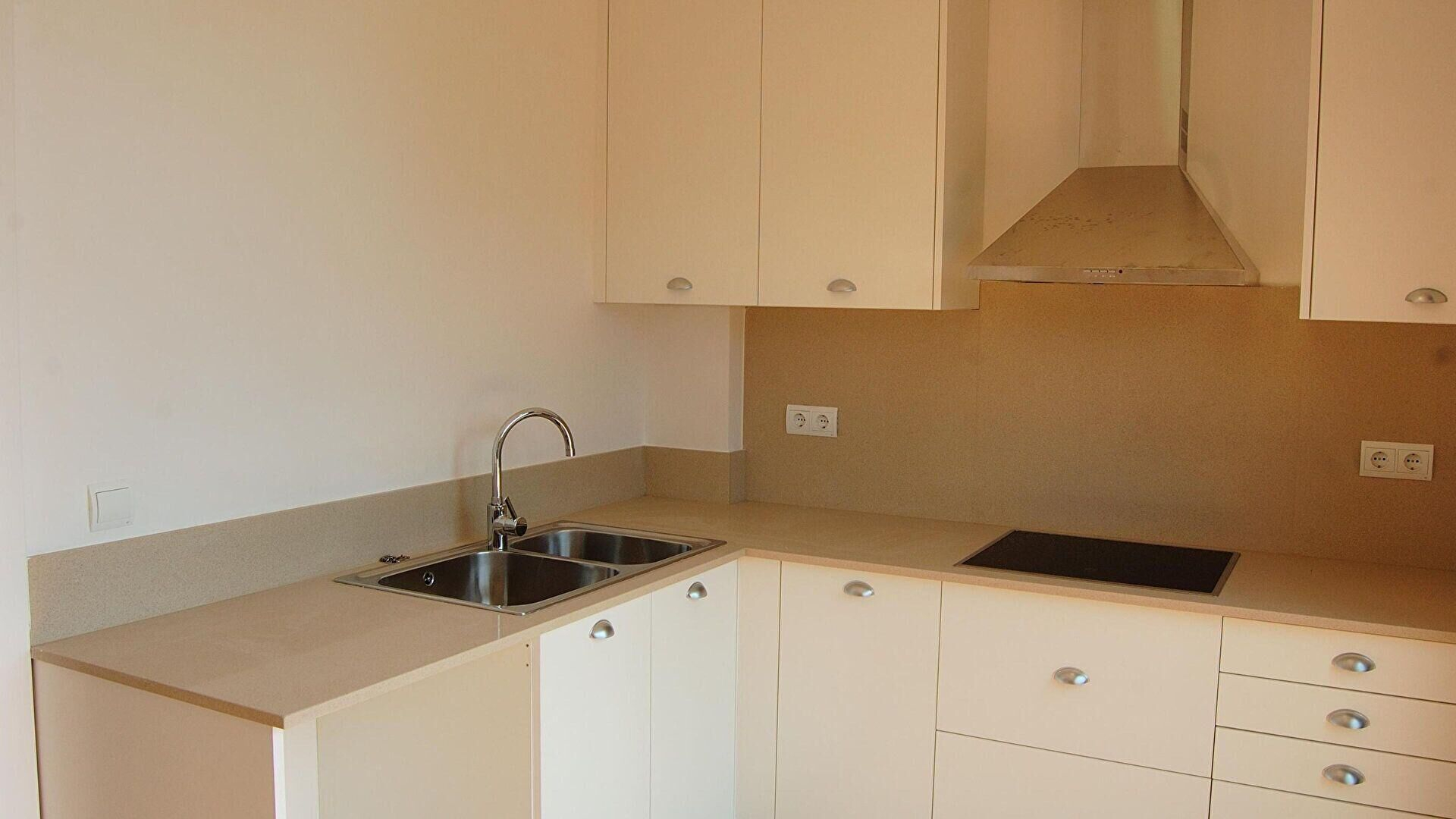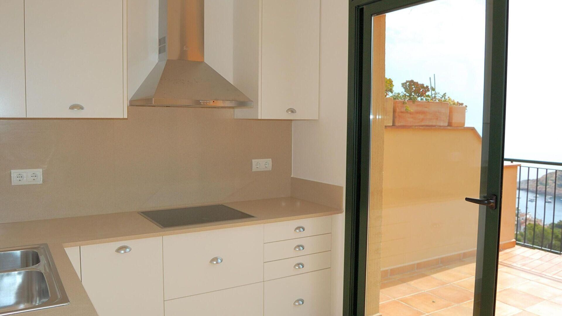 - Cuisine avec plaque de cuisson vitrocéramique, réfrigérateur combi, four, sortie sur la terrasse et vue sur la mer.