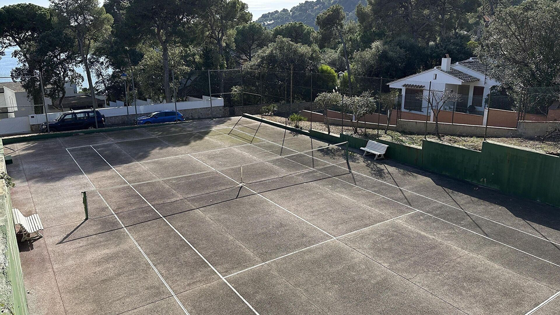 Piscine communautaire et court de tennis.